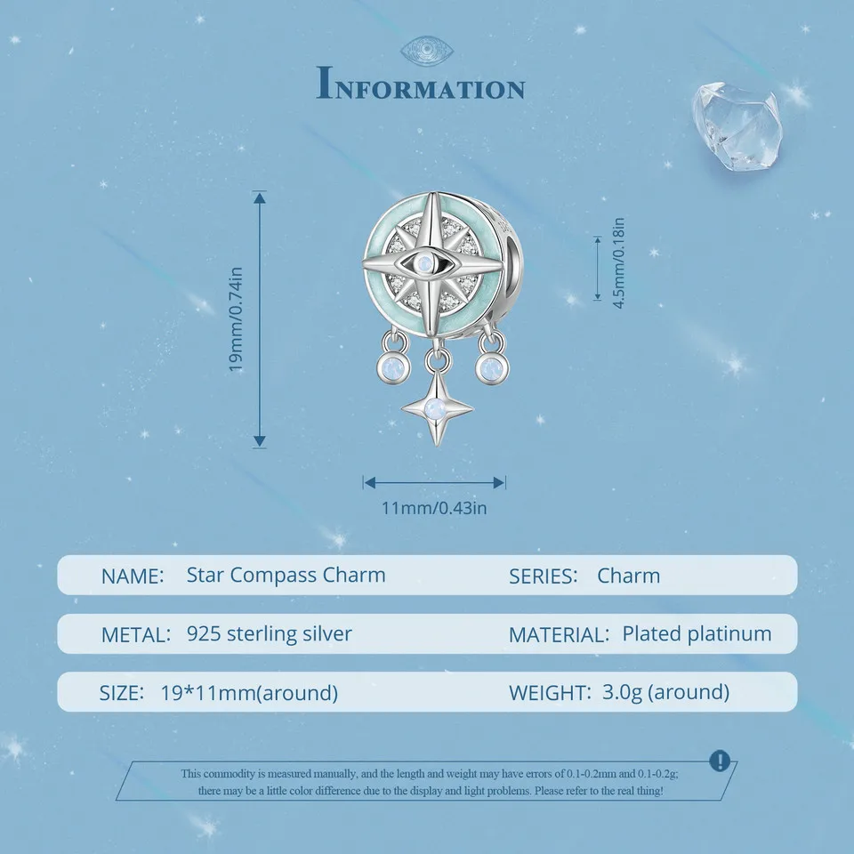 ❤ [Description] The shape of the compass is designed to symbolize beauty and completeness, combined with the engraved star and demon's eye element, bringing a touch of mystery and signifying that the guardian of luck will accompany you.