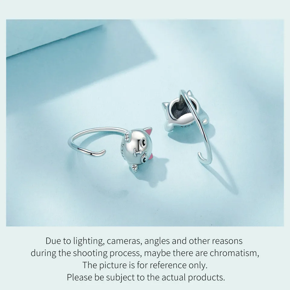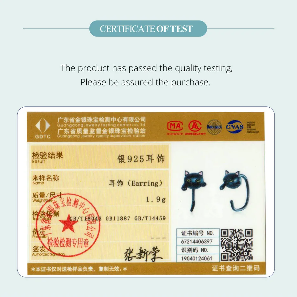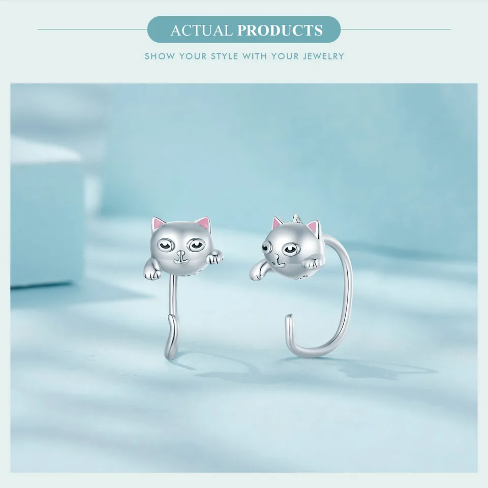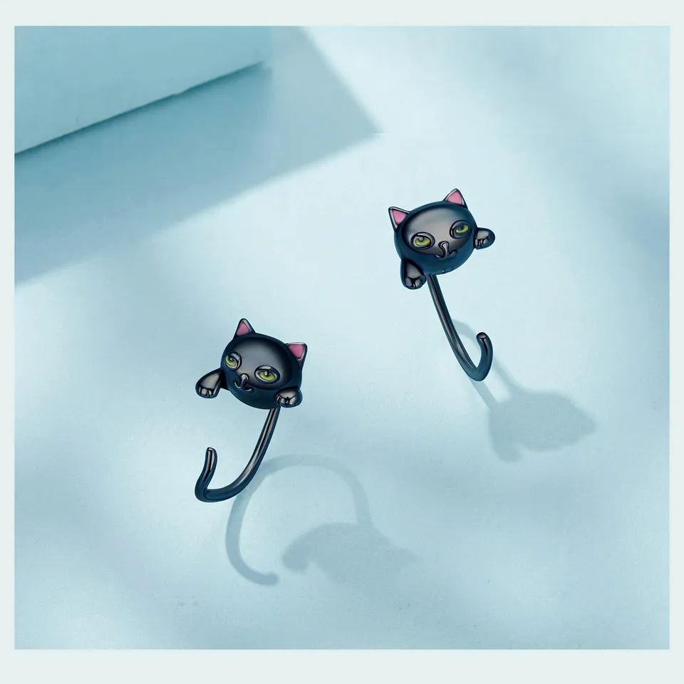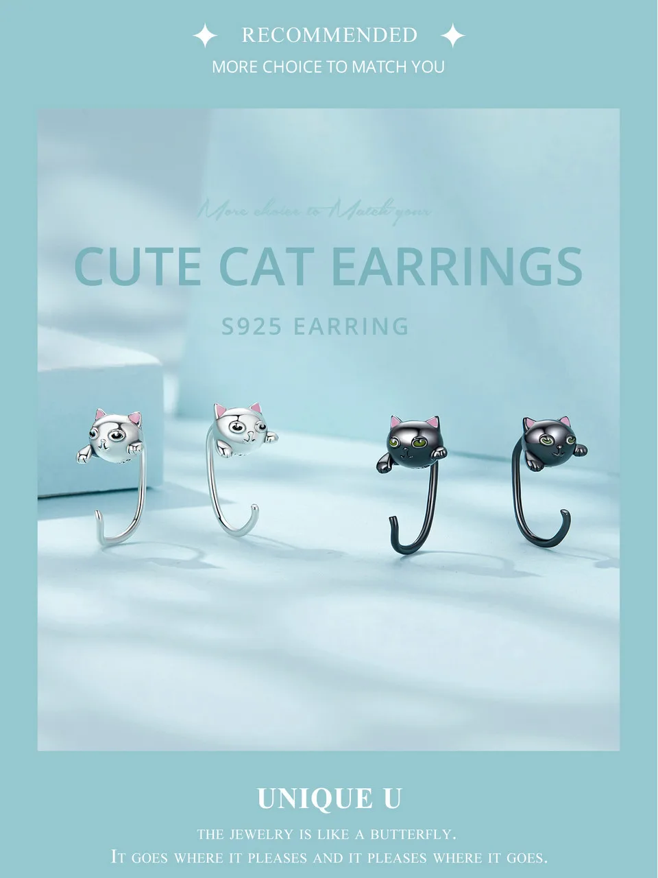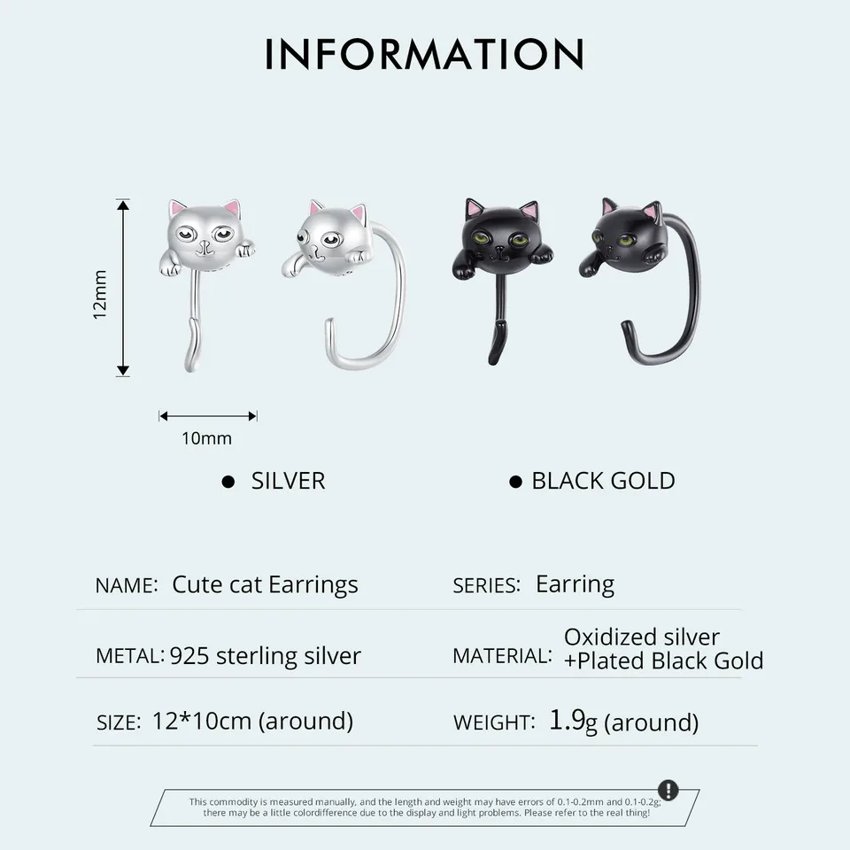 BAMOER Authentic 925 Sterling Silver Minimalist Black Cute Cat Stud Earrings for Women Fashion Jewelry Animal Gift SCE1125