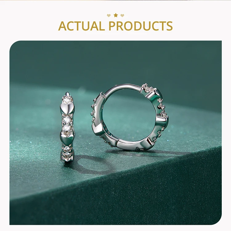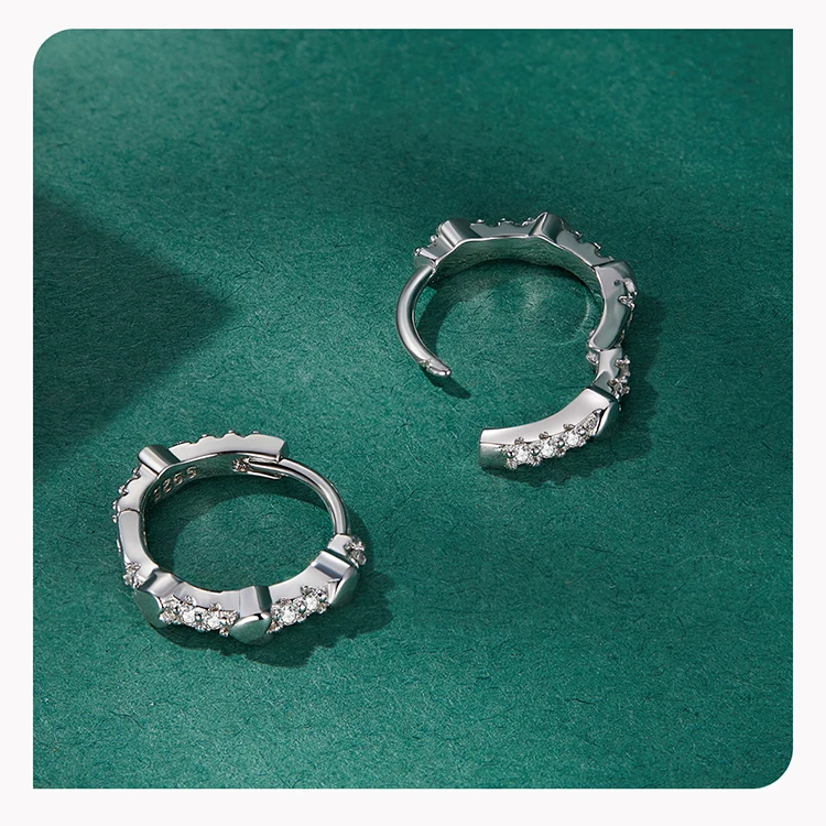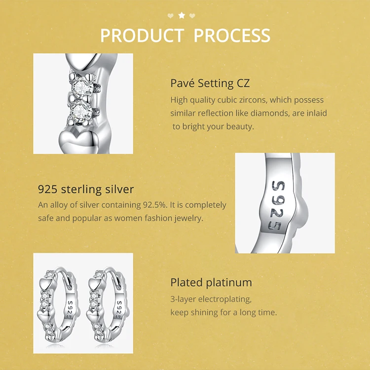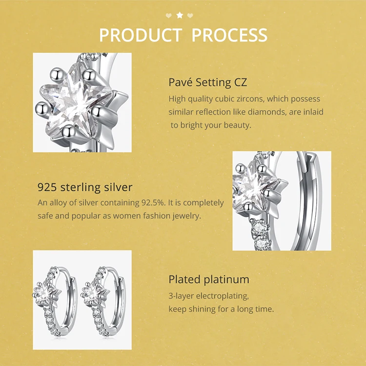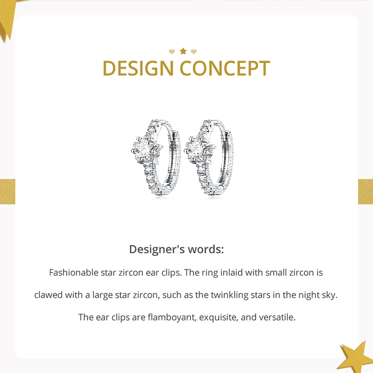 Bamoer Authentic 925 Sterling Silver Star Zircon Ear Clips for Women Heart Cubic Stone Ear Buckles Fine Jewelry Wedding Gift