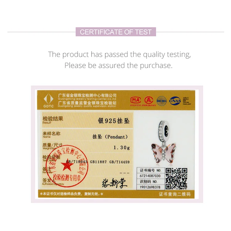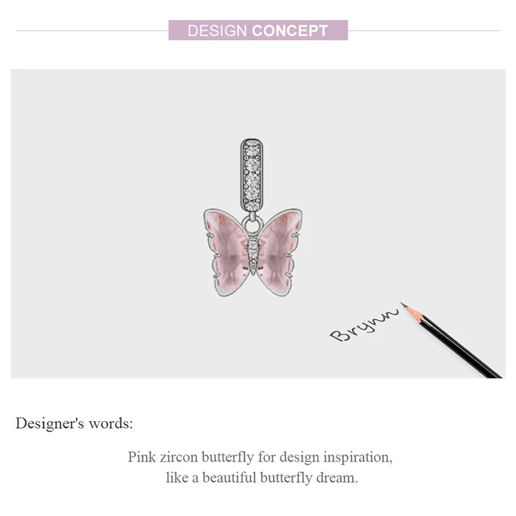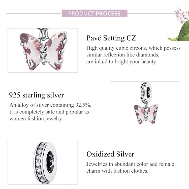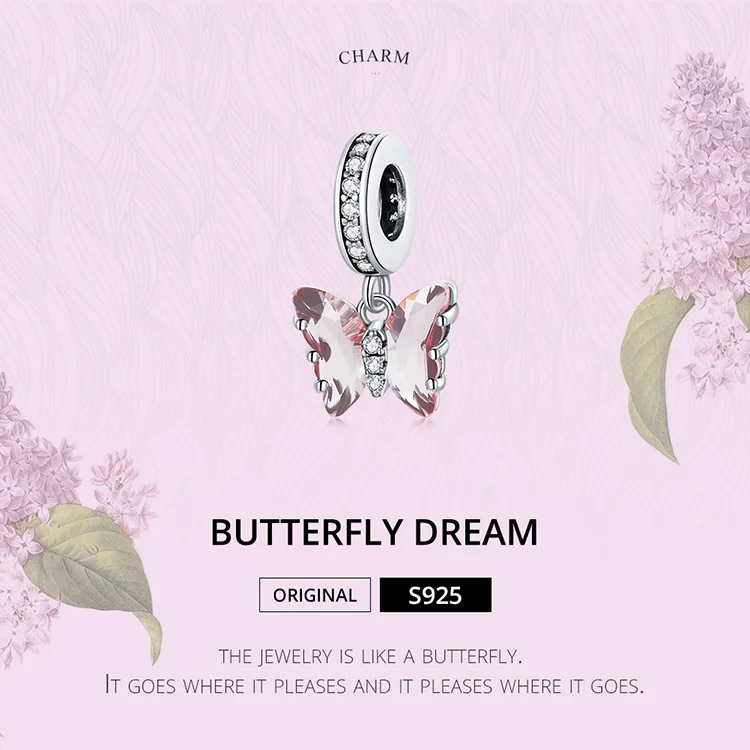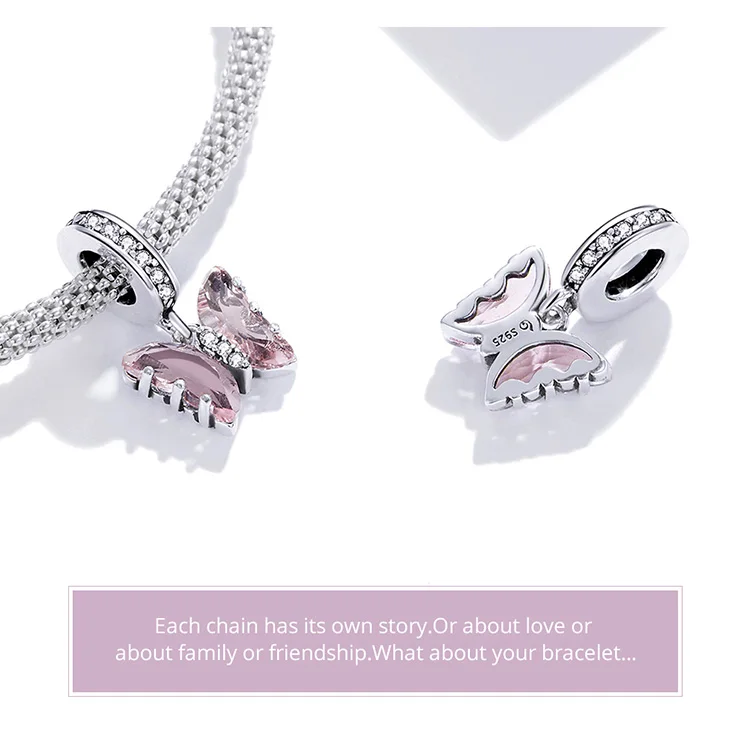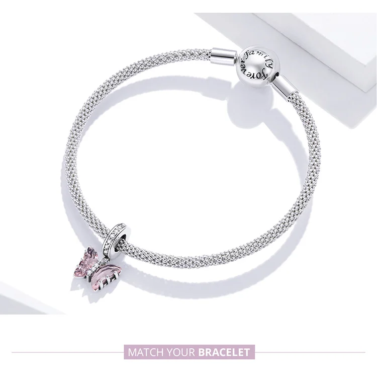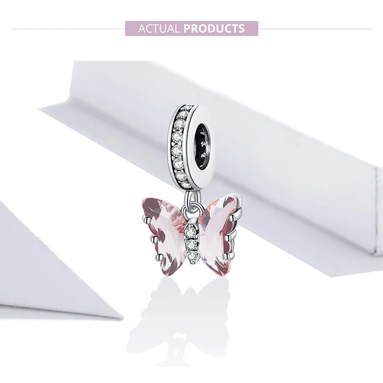 bamoer Authentic Butterfly Dream Pink Zircon 925 Sterling Silver Charm Pendant for Women Bracelet Bangle Necklace Jewelry BSC423
