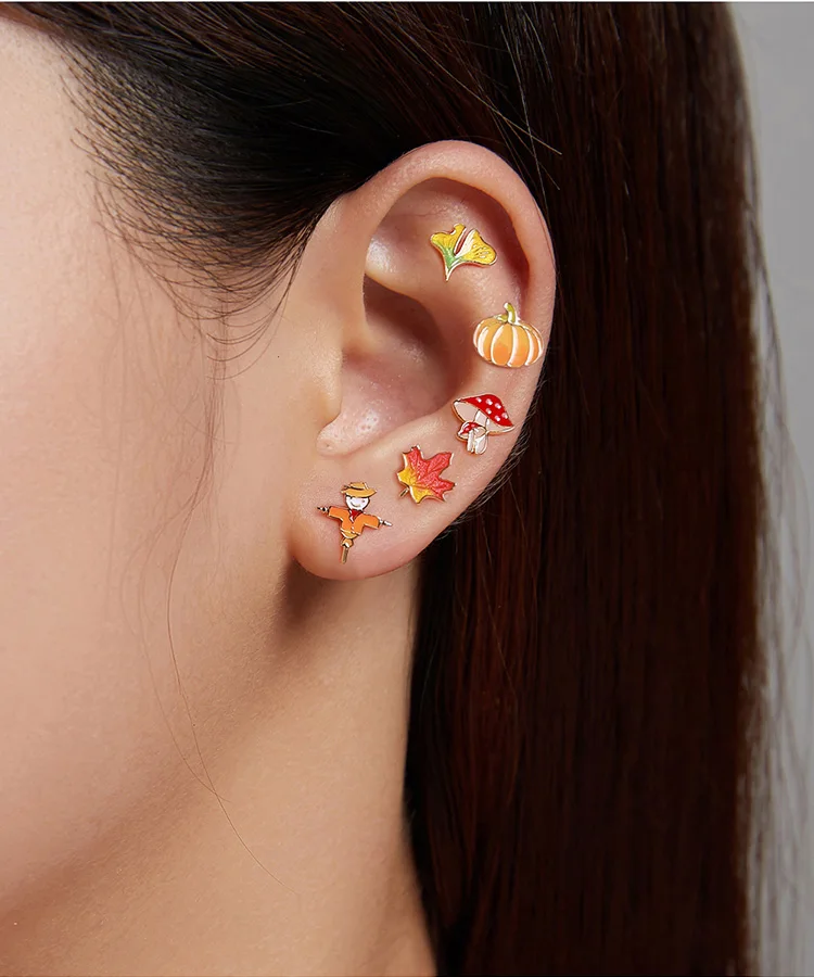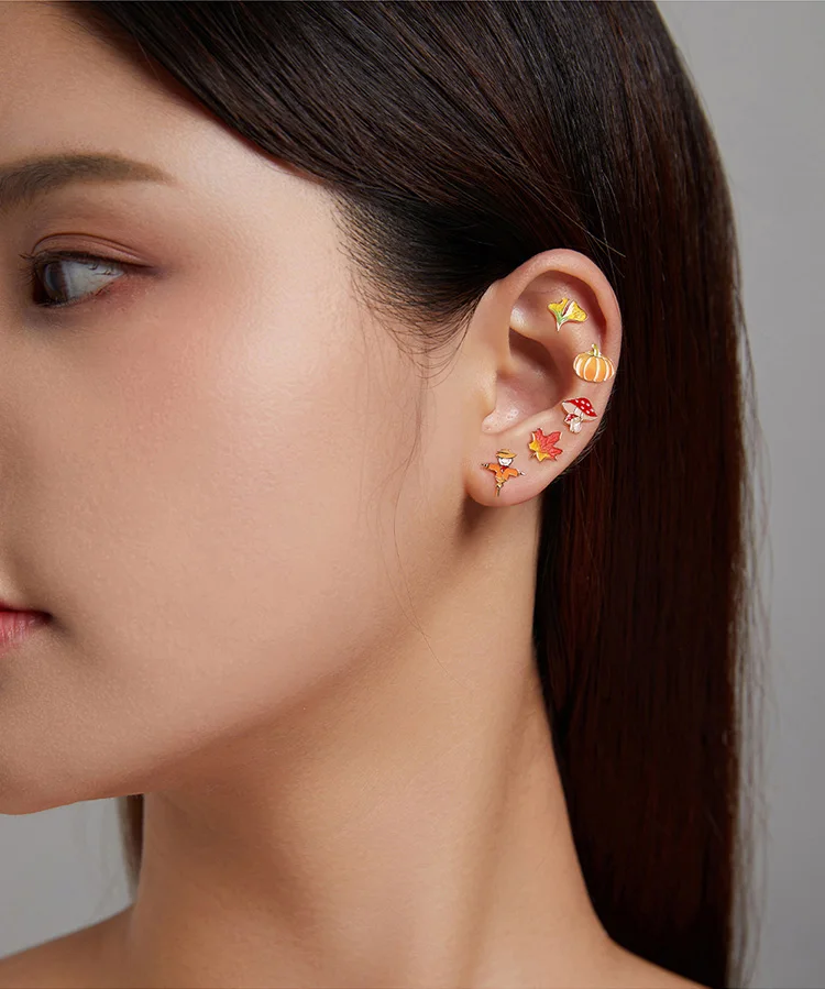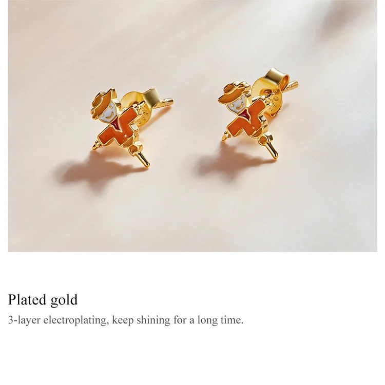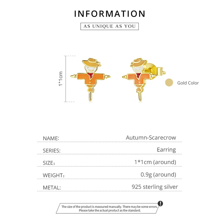 ❤ 【Description】The cute scarecrow smiles, wearing an orange-red jacket and a hat. The oil-ripping process makes the colors bright and beautiful, and the studs are electroplated real gold, which is exquisite and textured.