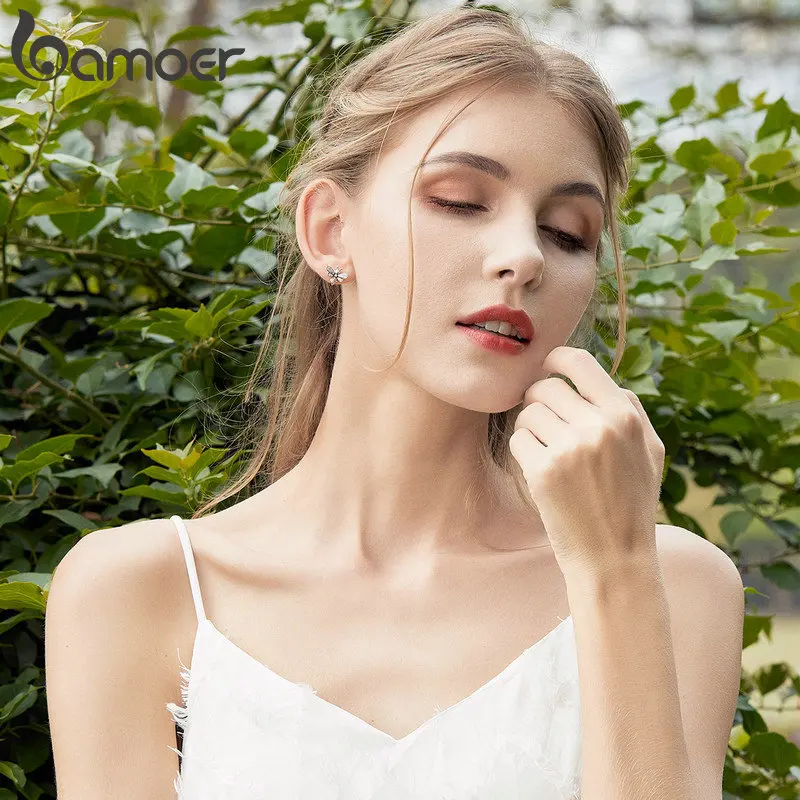 BAMOER Baby Bee Stud Earrings for Women Fashion Crystal Ear Studs 925 Sterling Silver Jewelry for Girl Anti-allergy SCE344