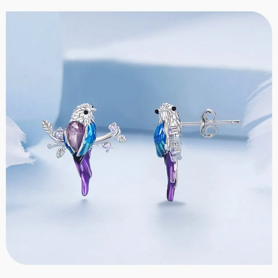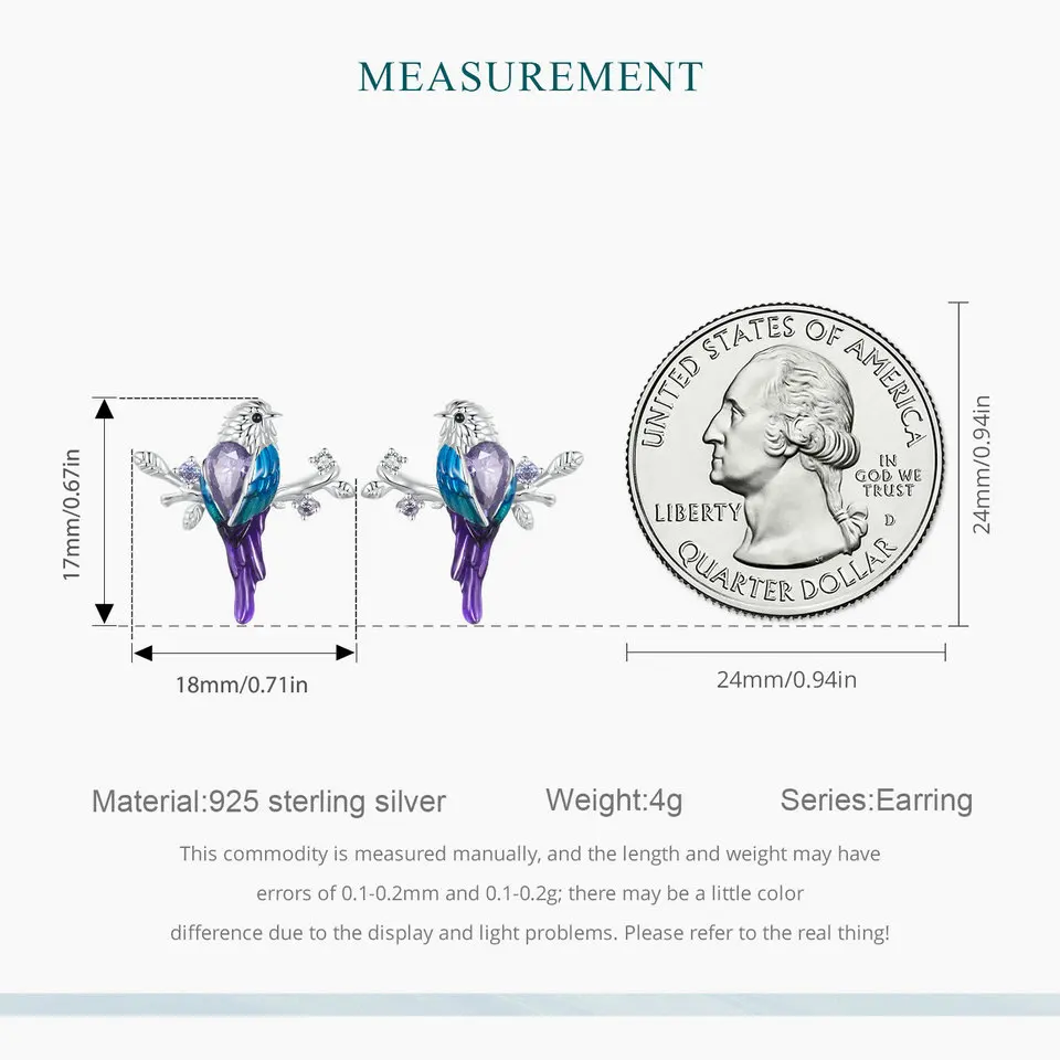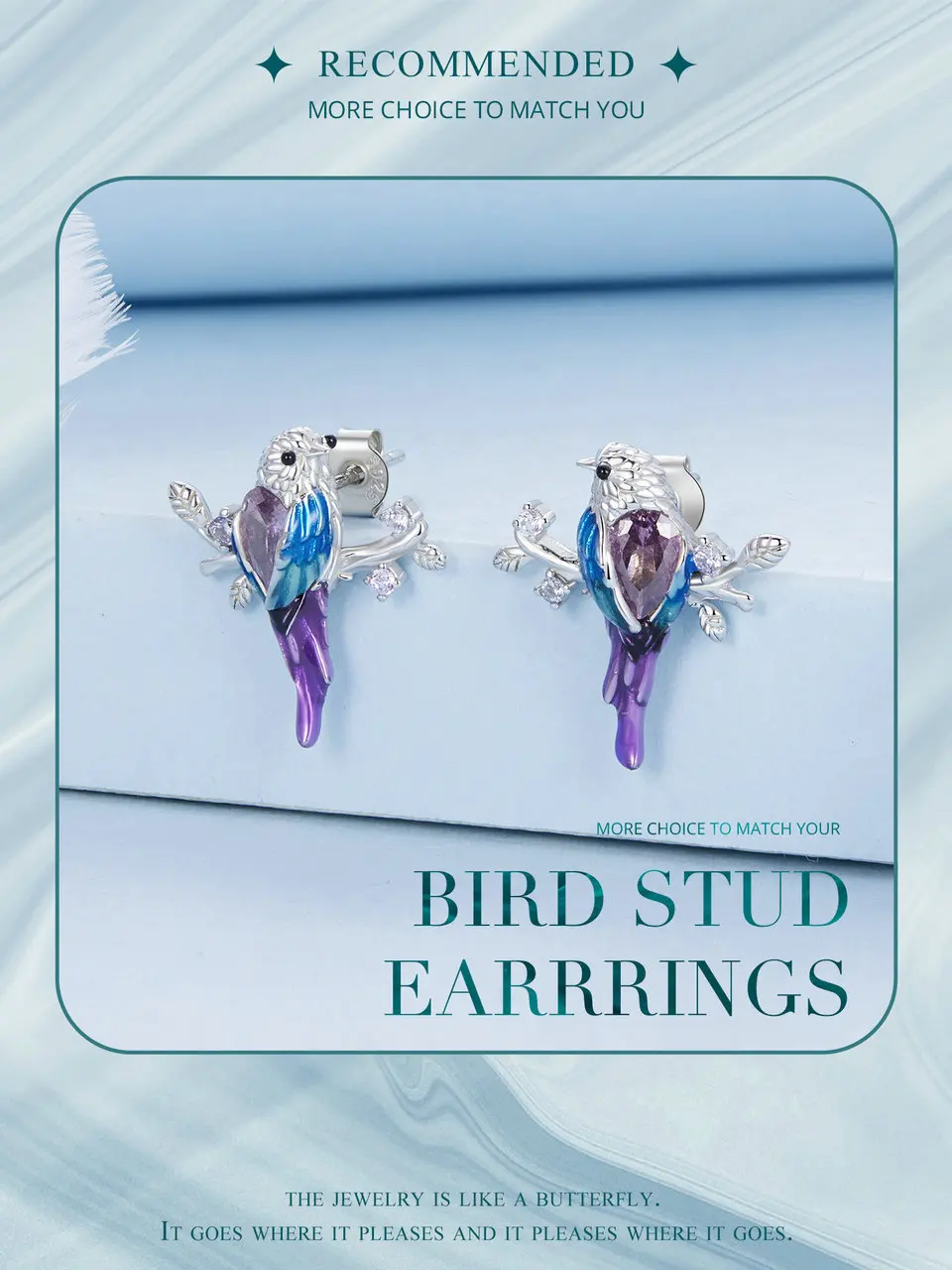 BAMOER Bird Earrings for Women 925 Sterling Silver Cute Animal Dangle Stud Earrings Jewelry Gifts for her