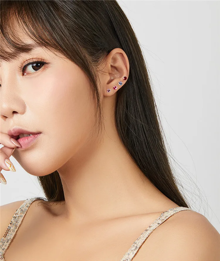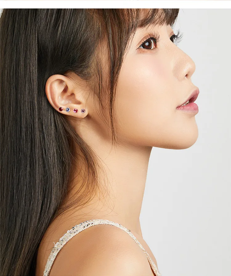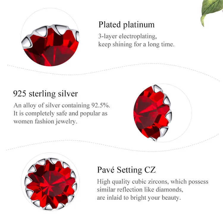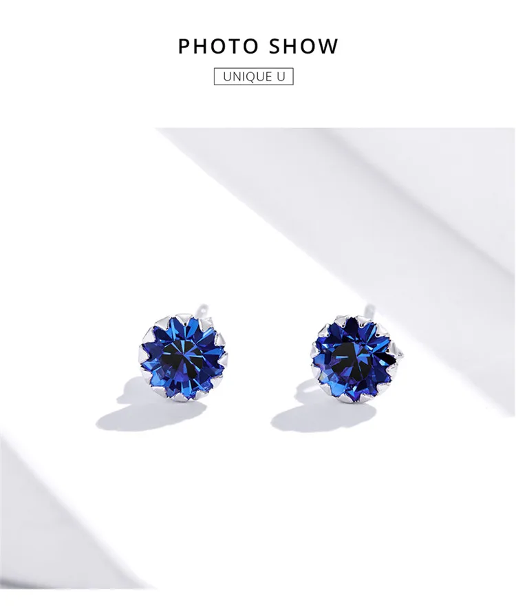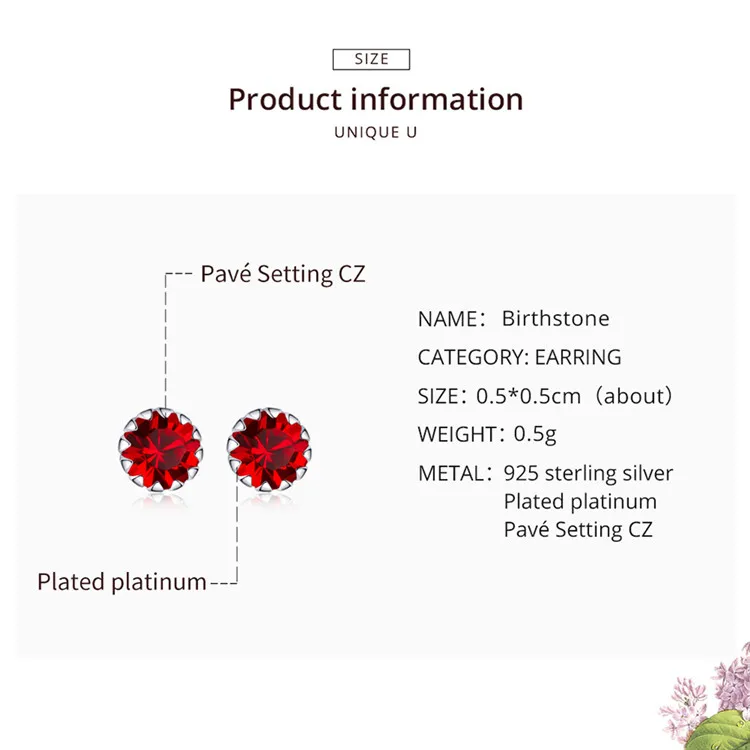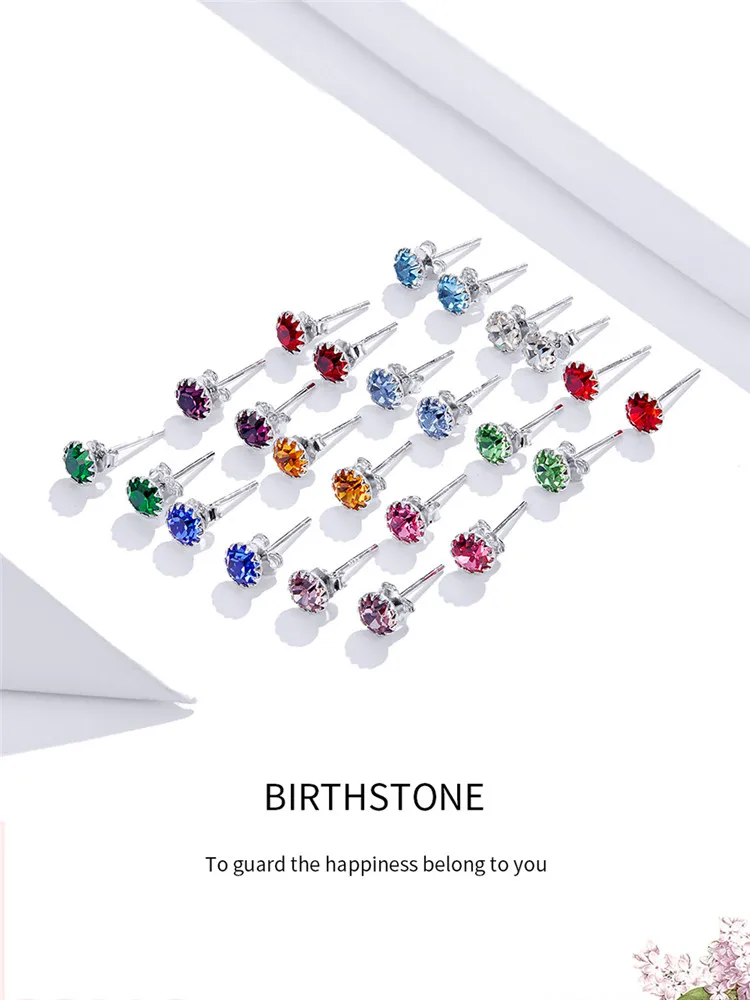 bamoer Birth Stone AAA Cubic Zircon Stud Earring 925 Sterling Silver Birthstone Ear Stud April Gifts Silver Jewelry SCE862