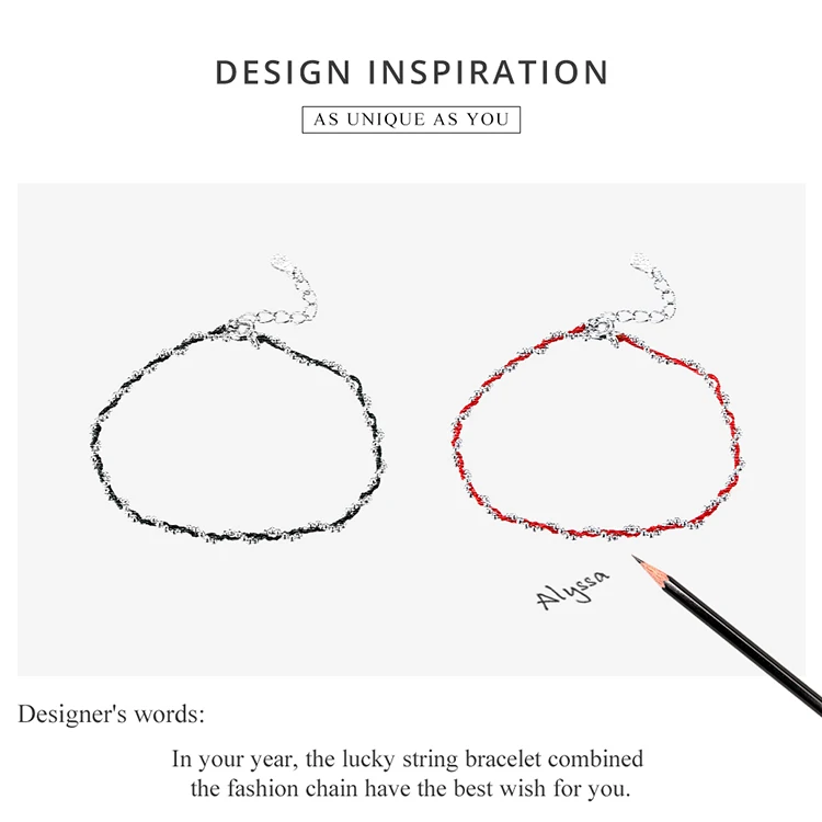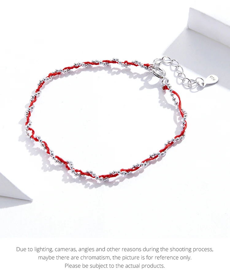 Material: S925+Plated platinum+Braided rope length:16-20cm Description: In your year, the lucky string bracelet combined the fashion chain have the best wish for you.