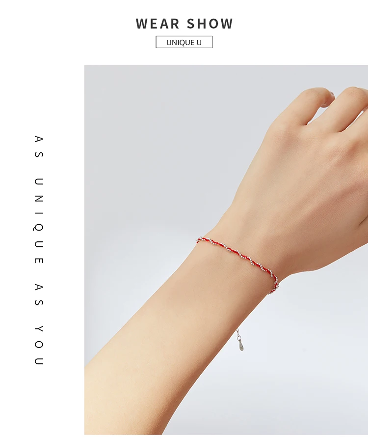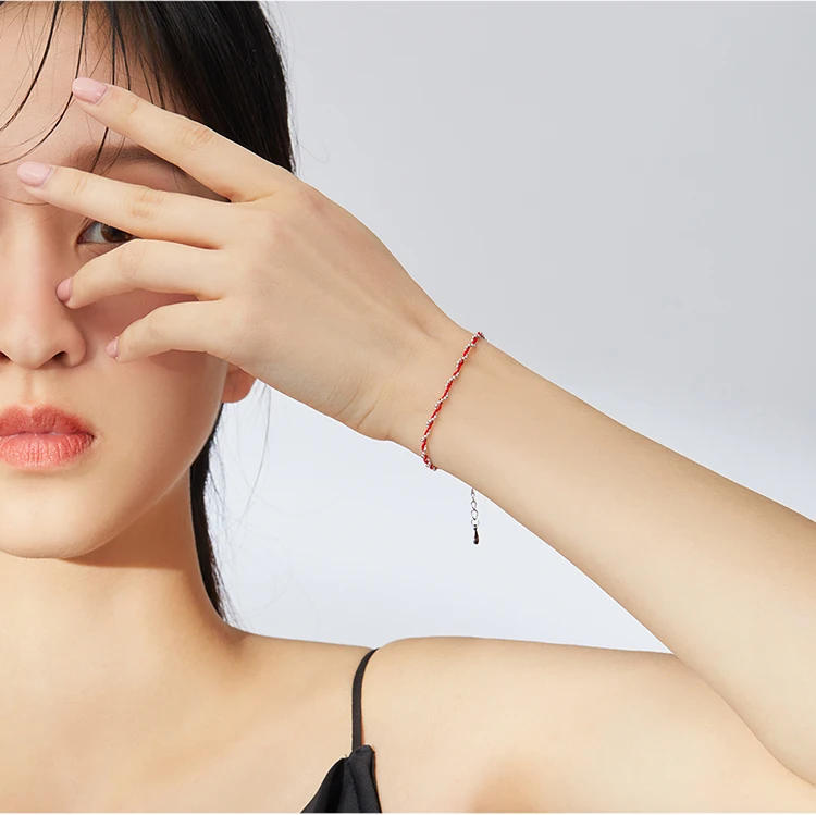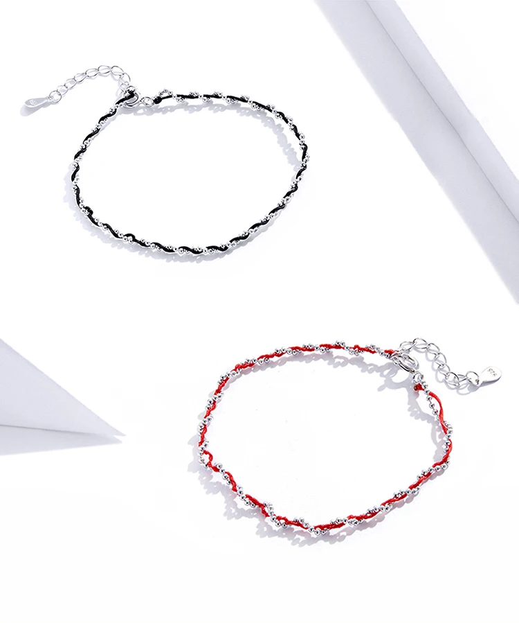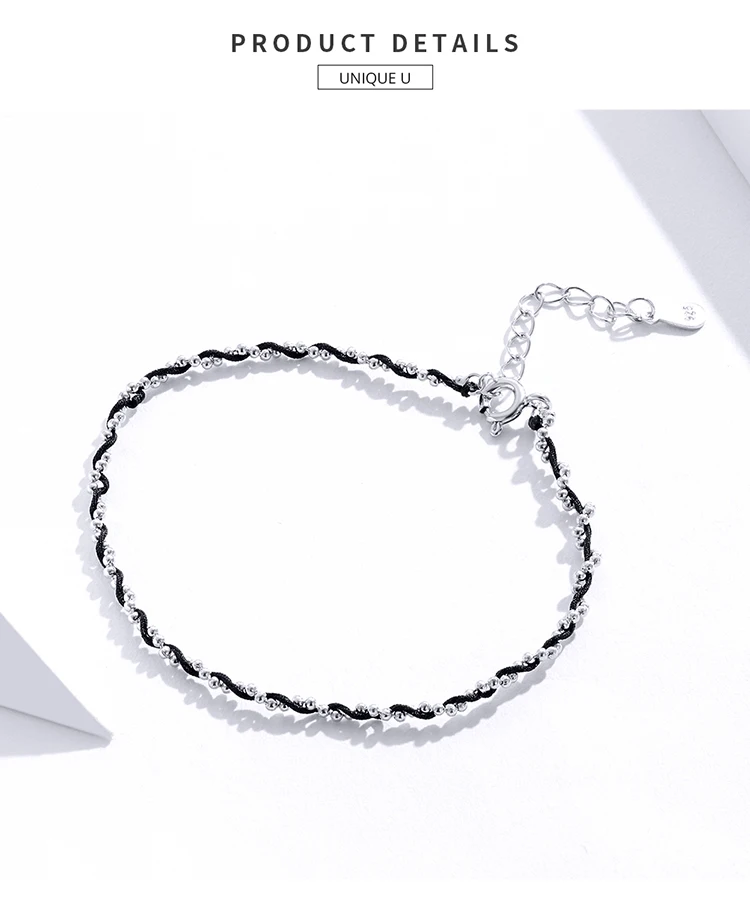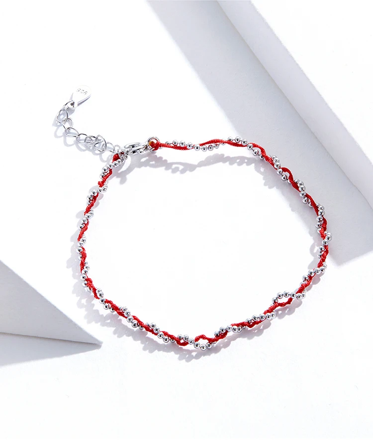 bamoer Black and Red Rope Bracelet with 925 Sterling Silver Beads Chain Bracelets for Women 2020 New Year Gift Friendship SCB173