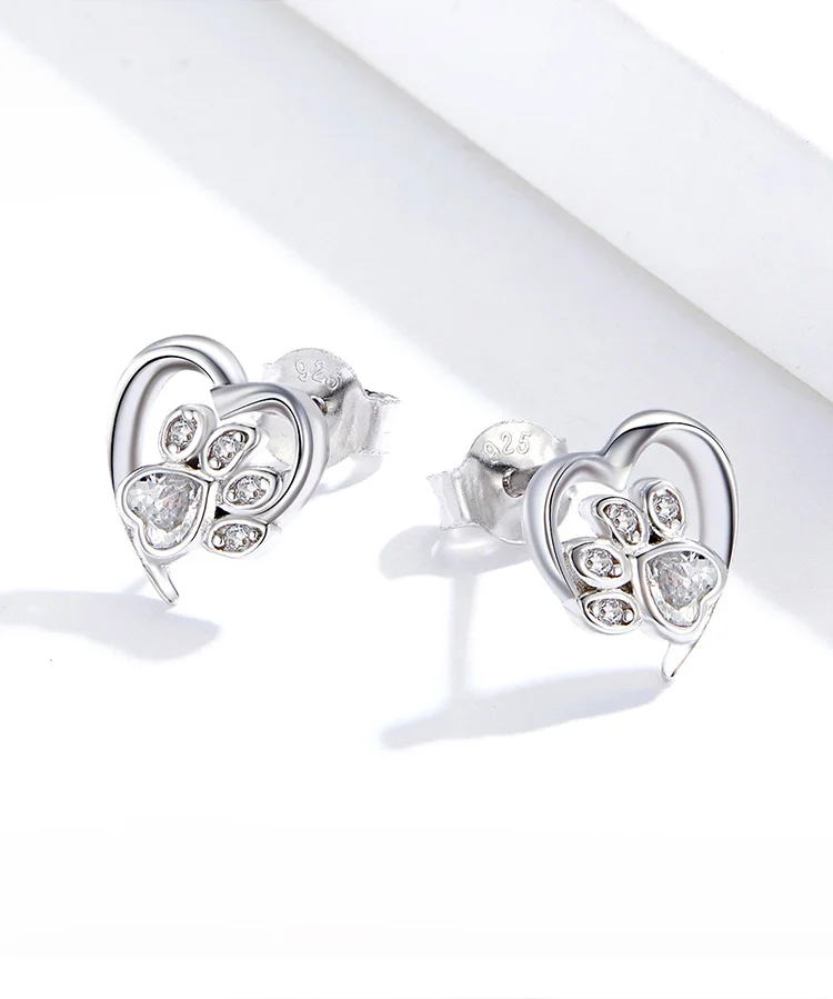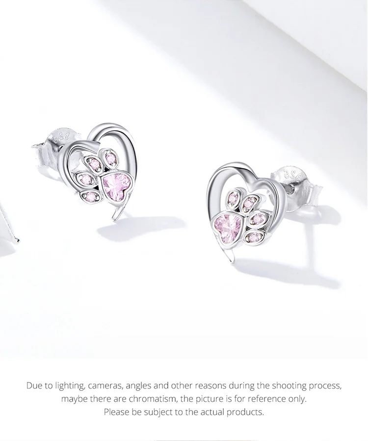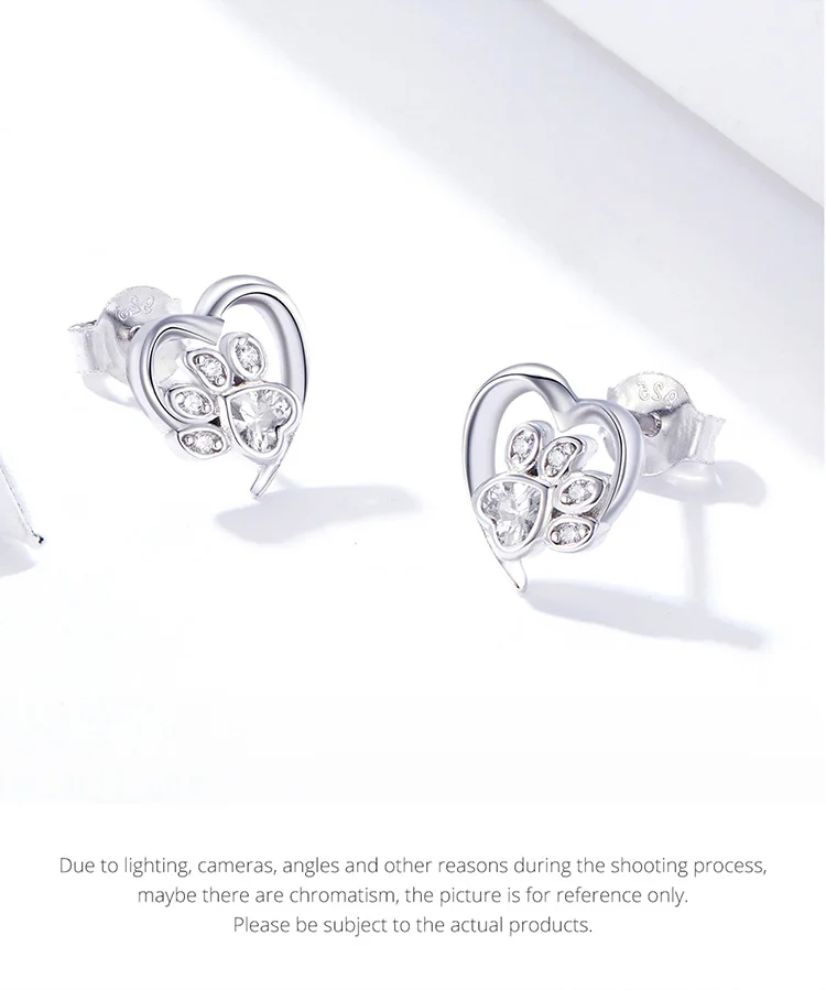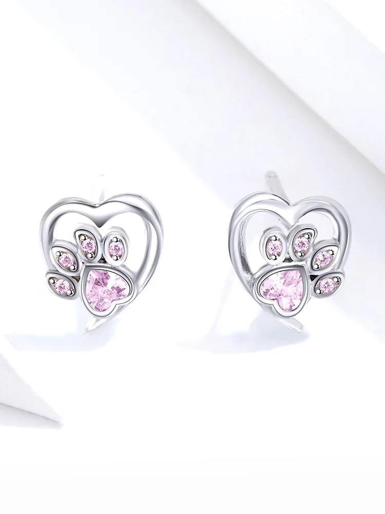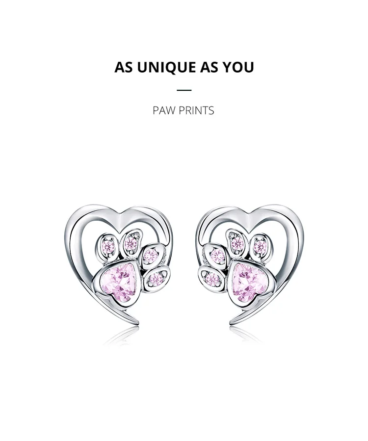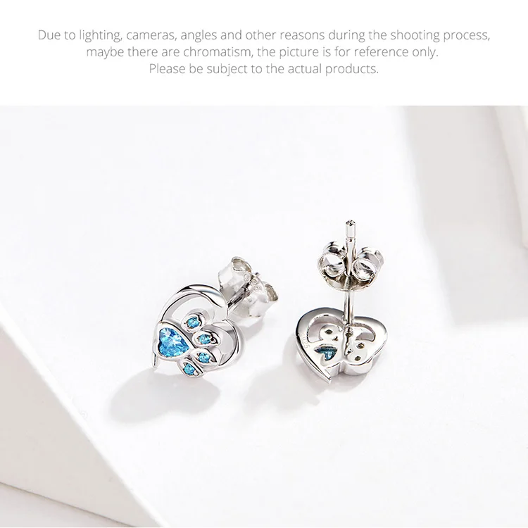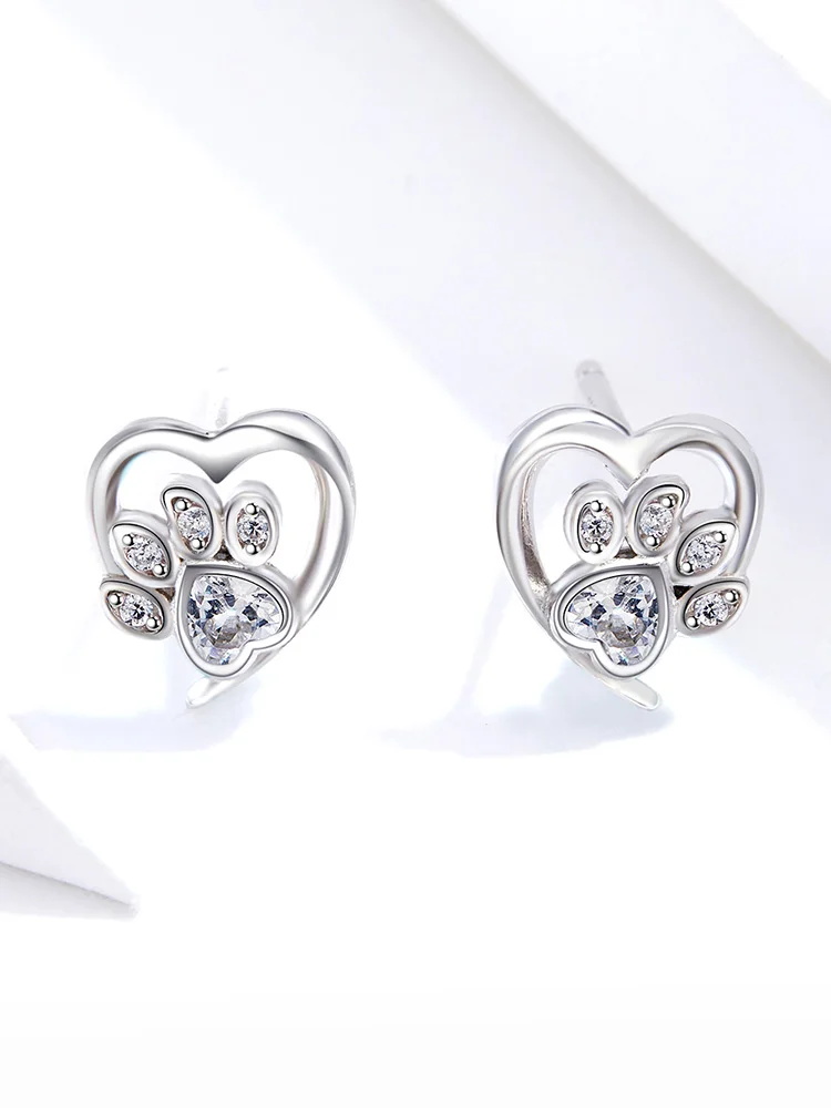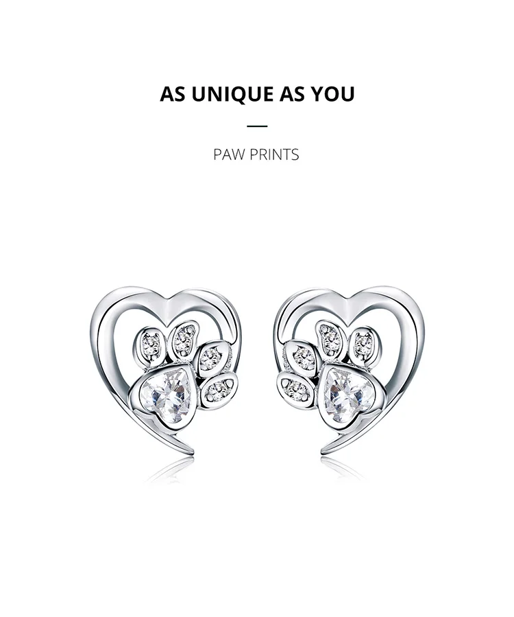 bamoer Blue Crystal Paw Stud Earrings for Girl Heart Shape CZ Footprint Ear Studs Jewelry Women Original Design Bijoux SCE654