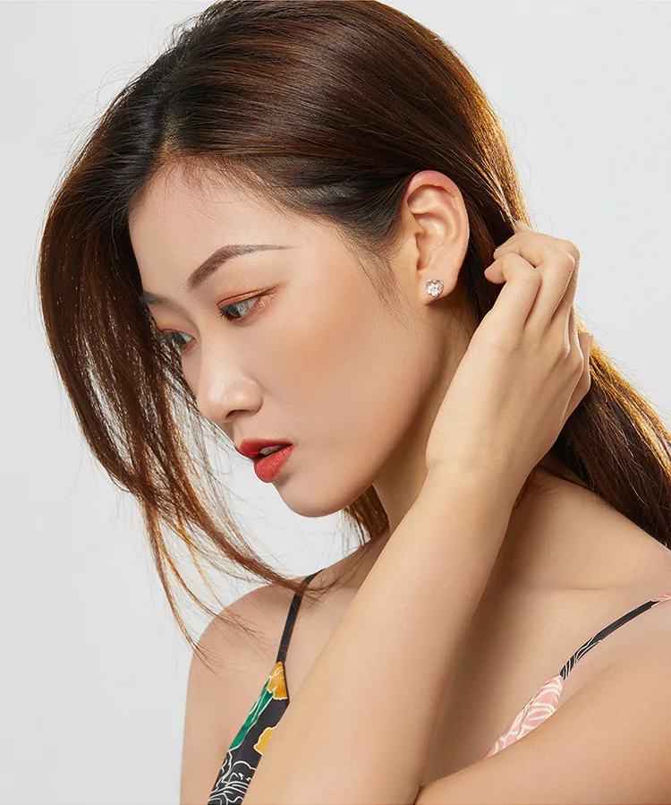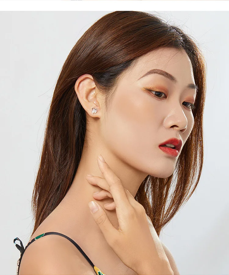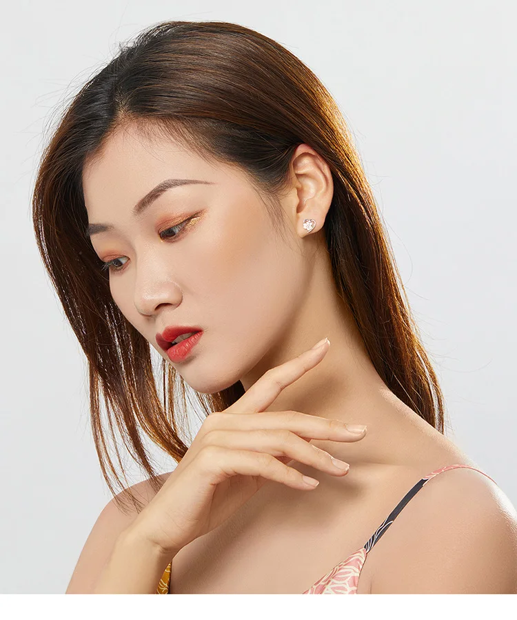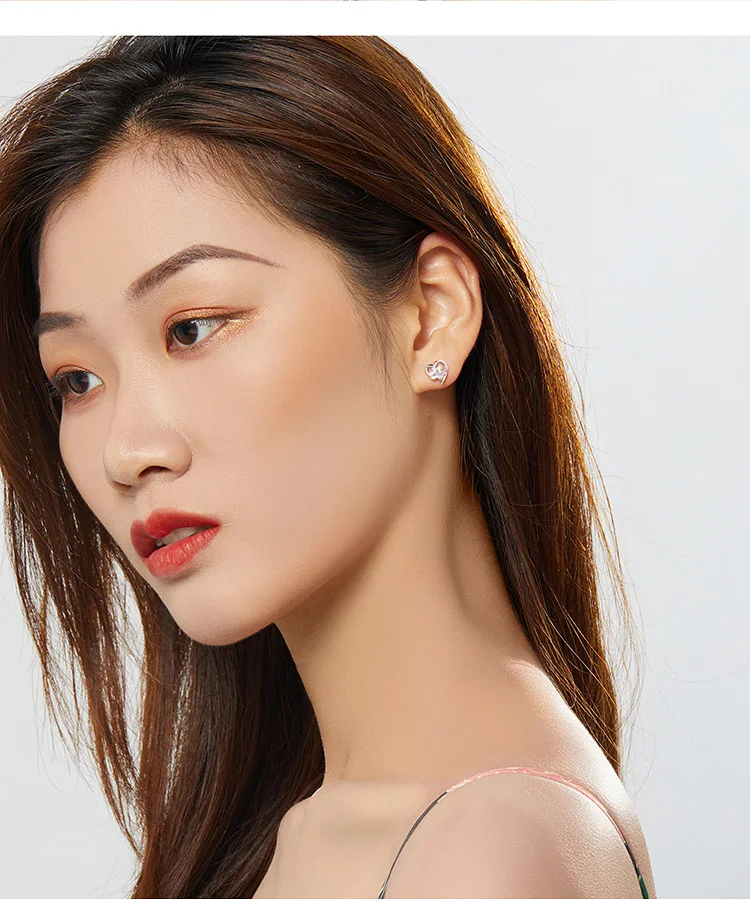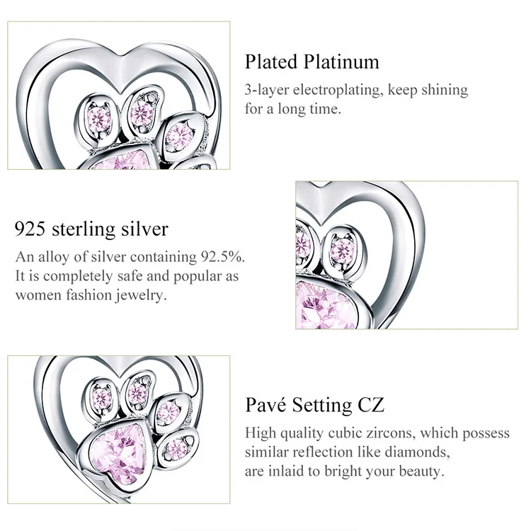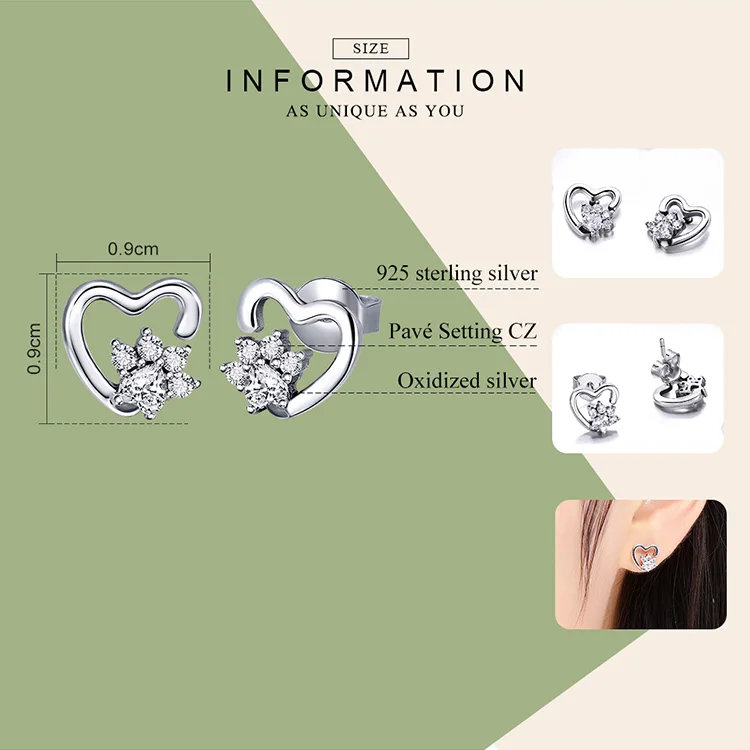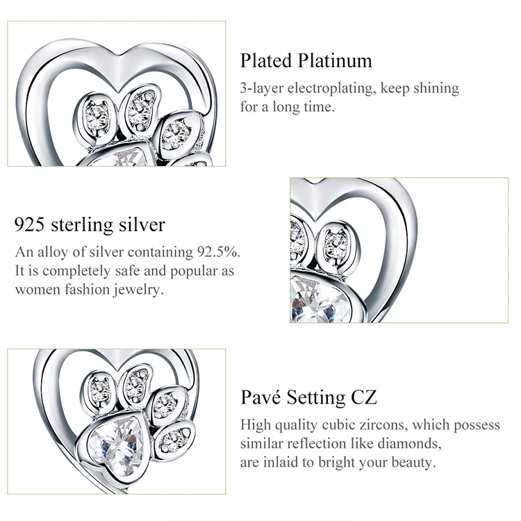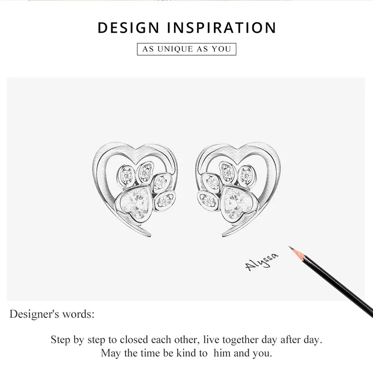 bamoer Blue Crystal Paw Stud Earrings for Girl Heart Shape CZ Footprint Ear Studs Jewelry Women Original Design Bijoux SCE654