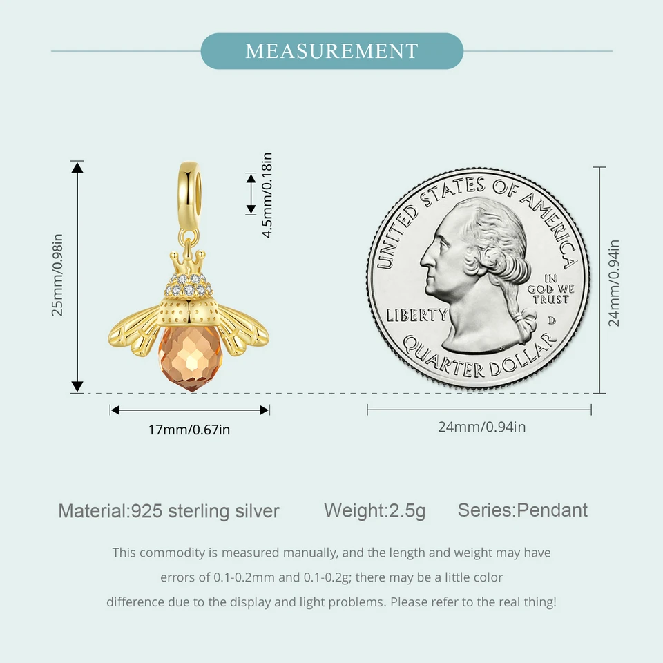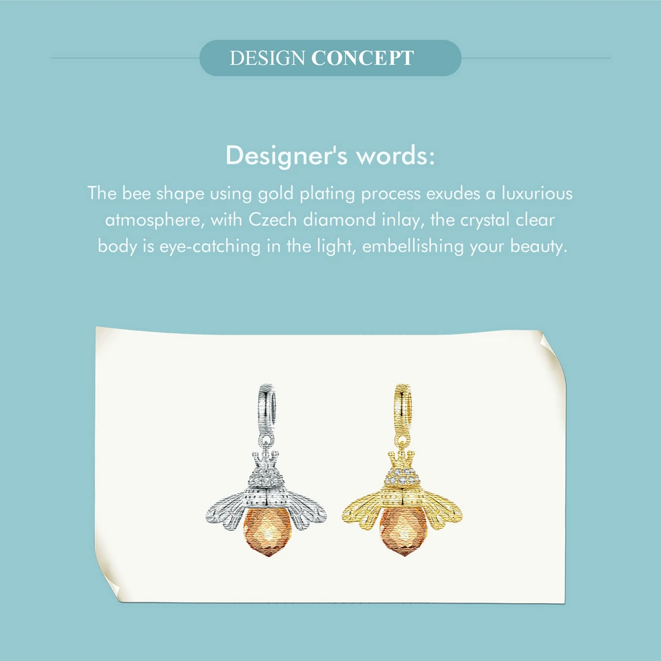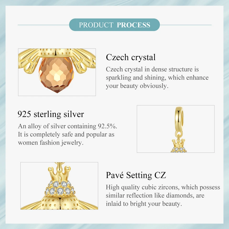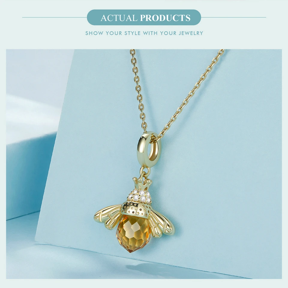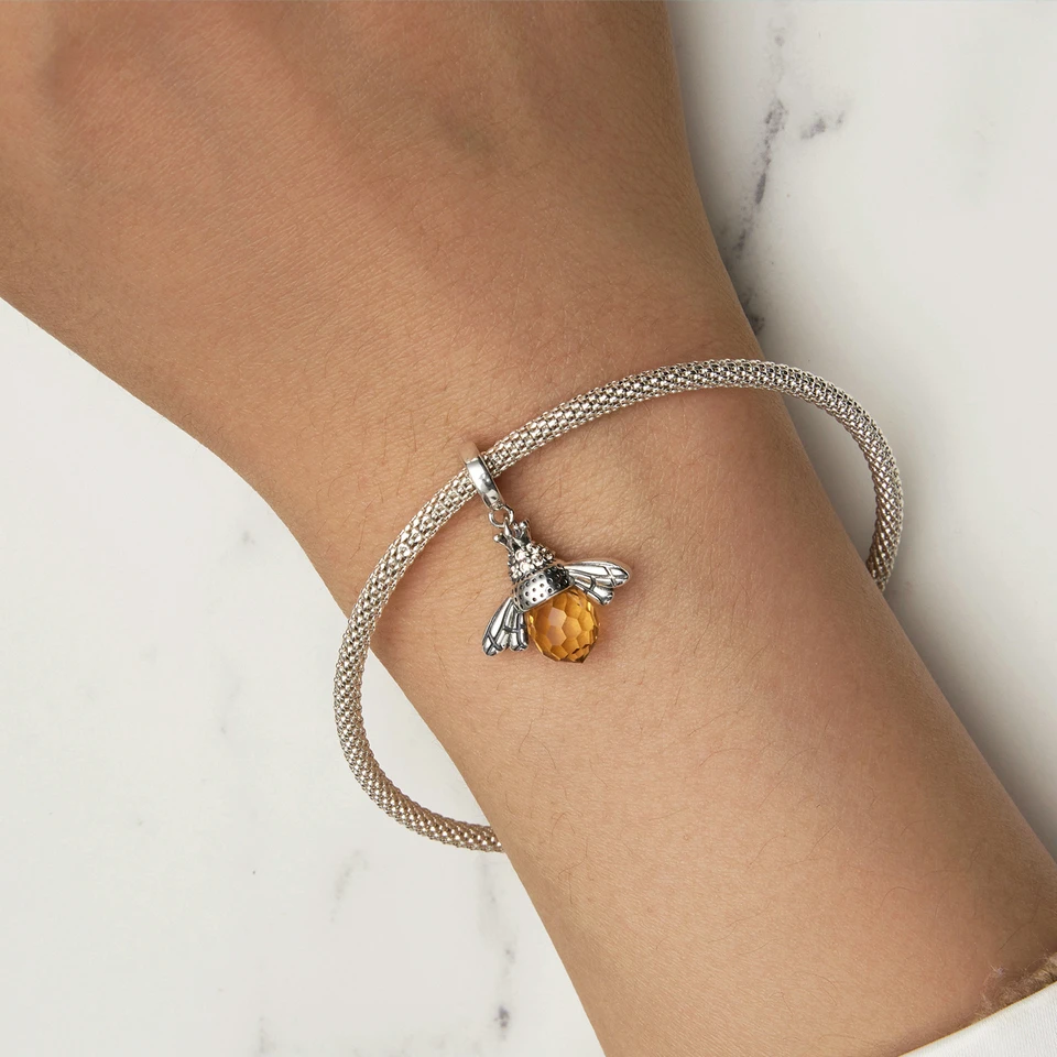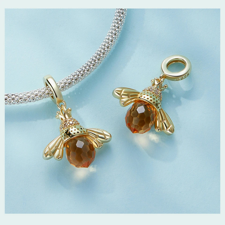 BAMOER Classic New 925 Sterling Silver Orange Wing Animal Bee Pendants fit Bracelet for Women Accessories SCC035