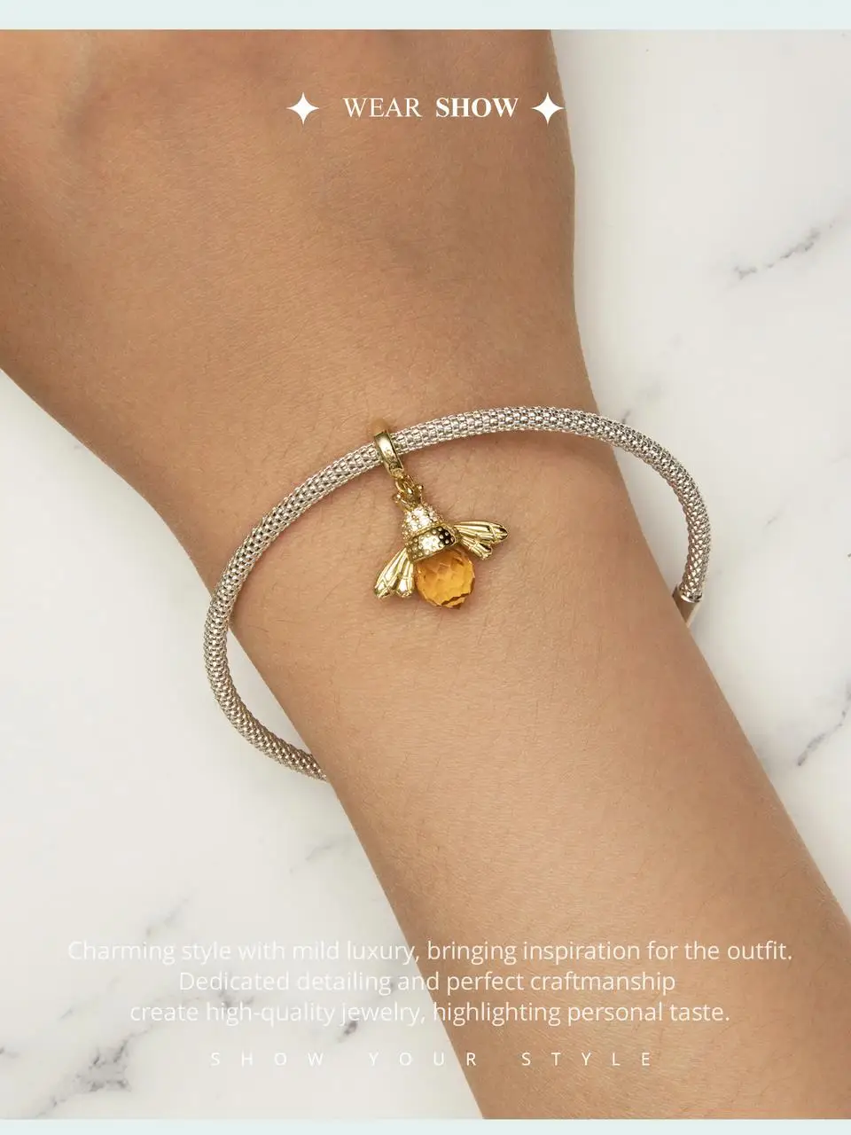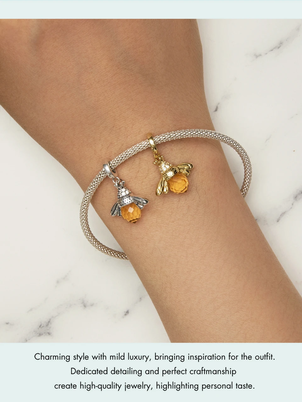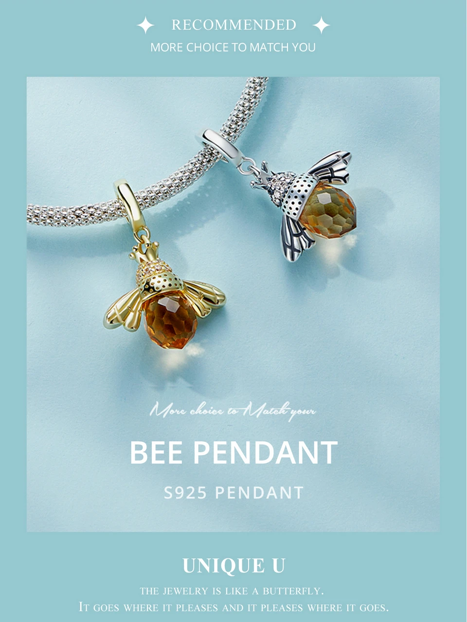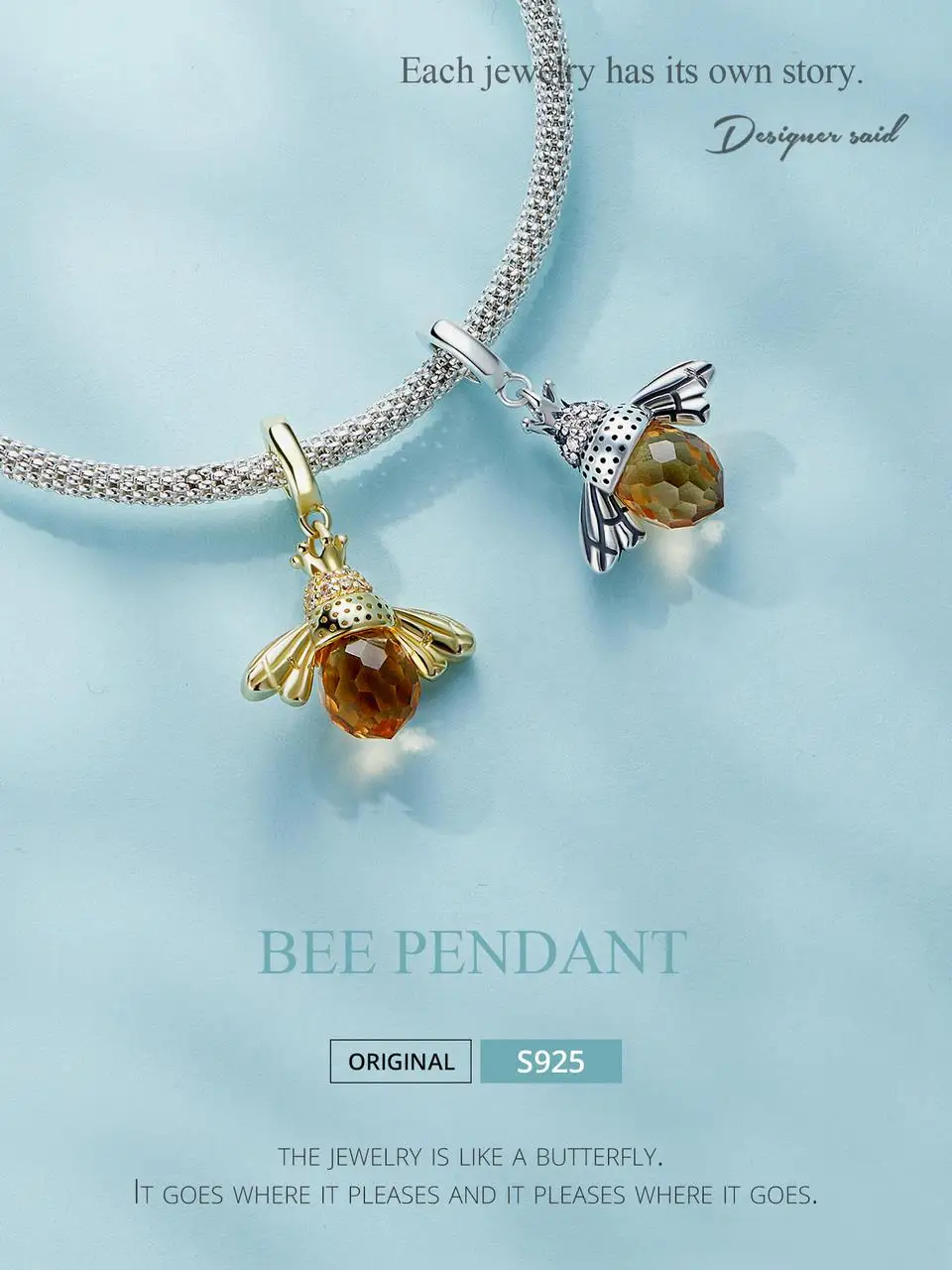 BAMOER Classic New 925 Sterling Silver Orange Wing Animal Bee Pendants fit Bracelet for Women Accessories SCC035