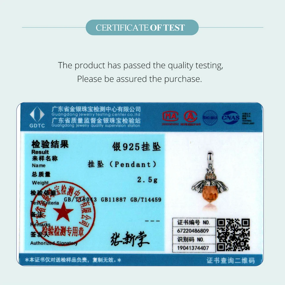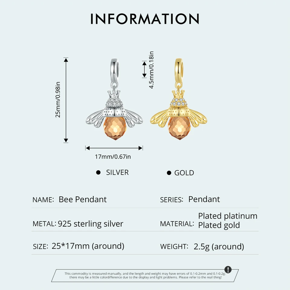 BAMOER Classic New 925 Sterling Silver Orange Wing Animal Bee Pendants fitBracelet for Women Accessories SCC035