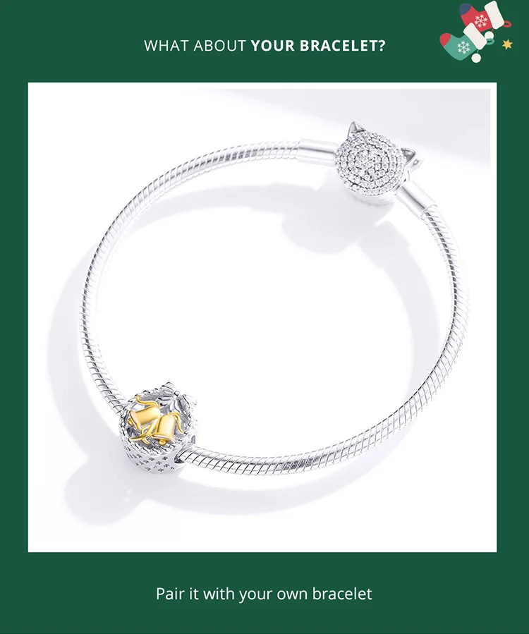 bamoer Cute Reindeer Metal Beads for Women 925 Sterling Plated Silver Charm Jewelry for Bracelet Bangle Christmas Gifts BSC375