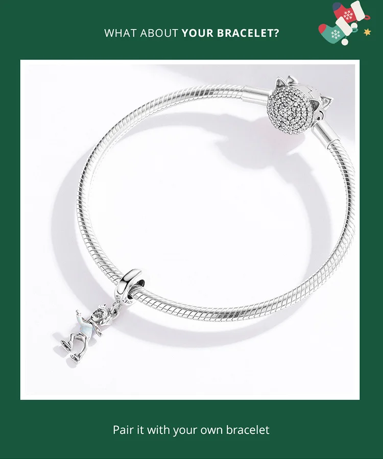 Material: S925+Plated platinum+Enamel process Size:1.4*0.9cm Description: The cute little reindeer brings good blessings to people. Romantic craftsmanship creates a joyful atmosphere.