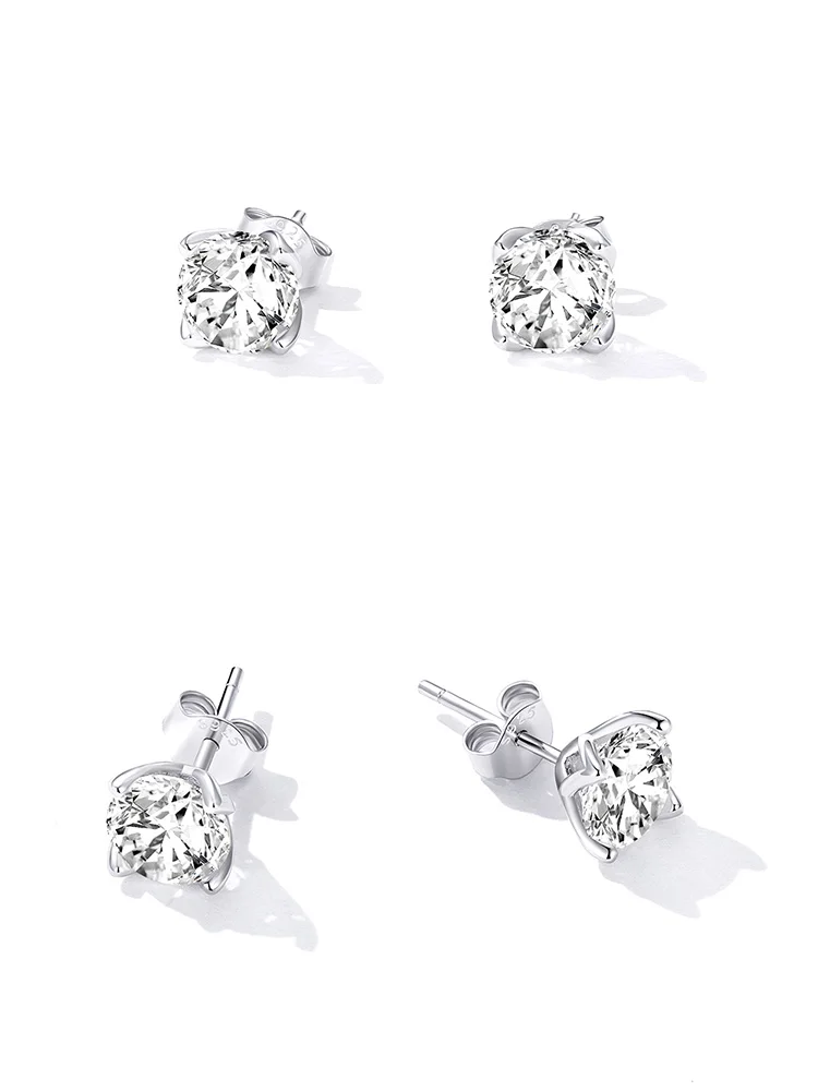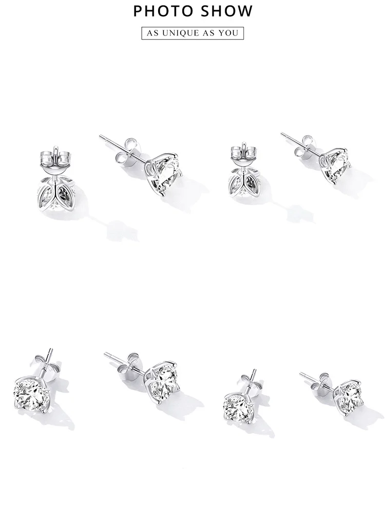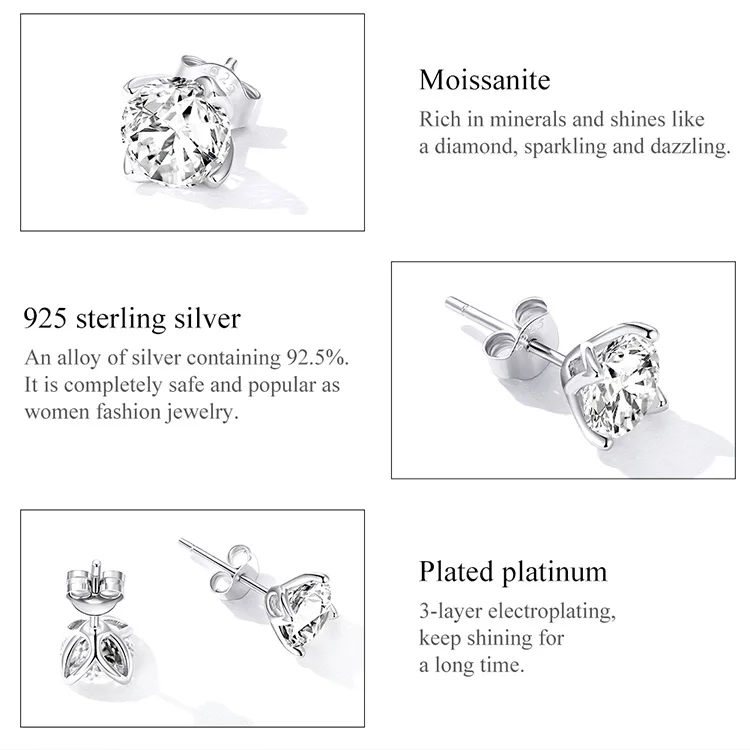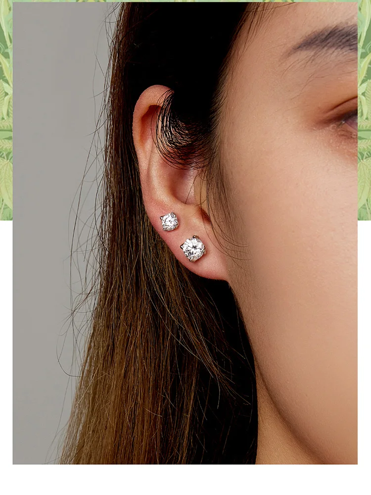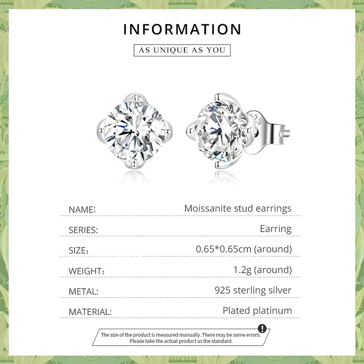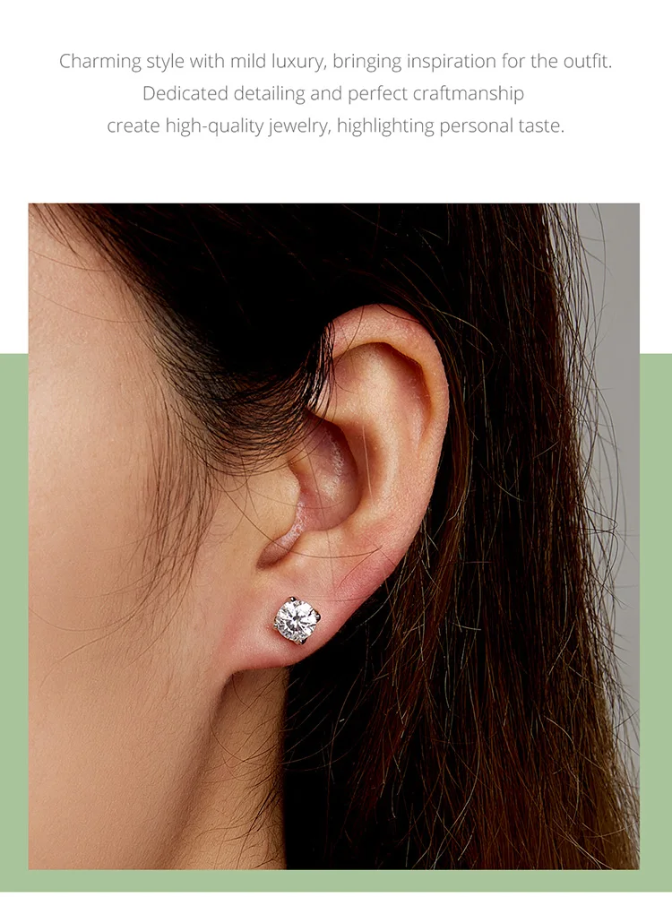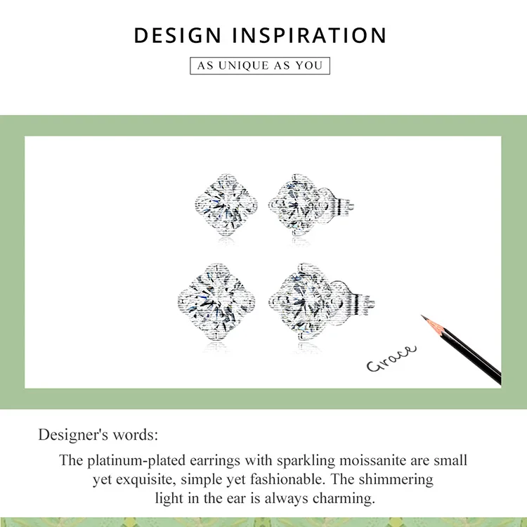 ❤ [Description] The platinum-plated earrings with sparkling moissanite are small yet exquisite, simple yet fashionable. The shimmering light in the ear is always charming.