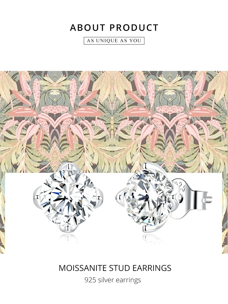Bamoer D Color VVS1 EX 1CT Moissanite Stud Earrings for Women 925 Sterling Silver Wedding Gift Top Quality Dazzling Earrings
