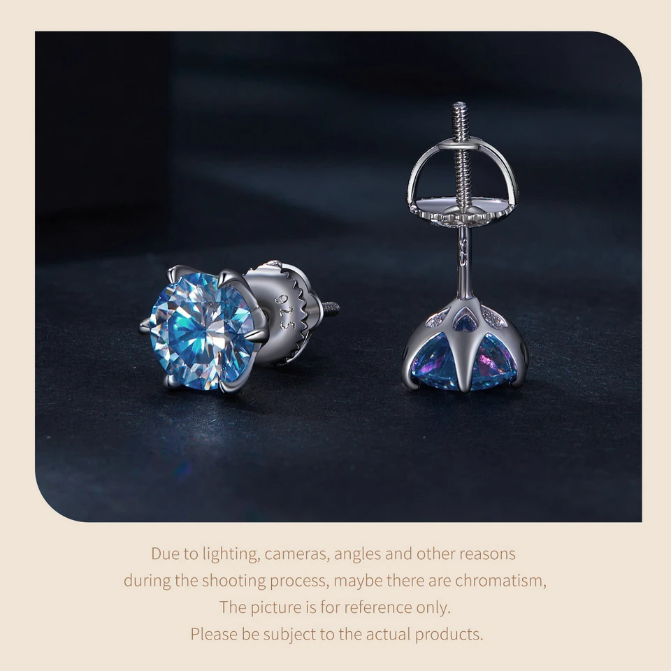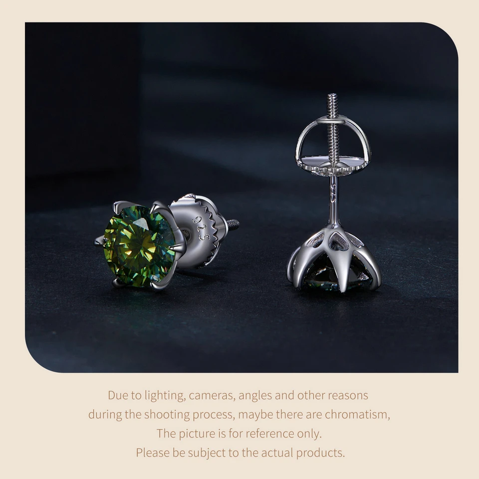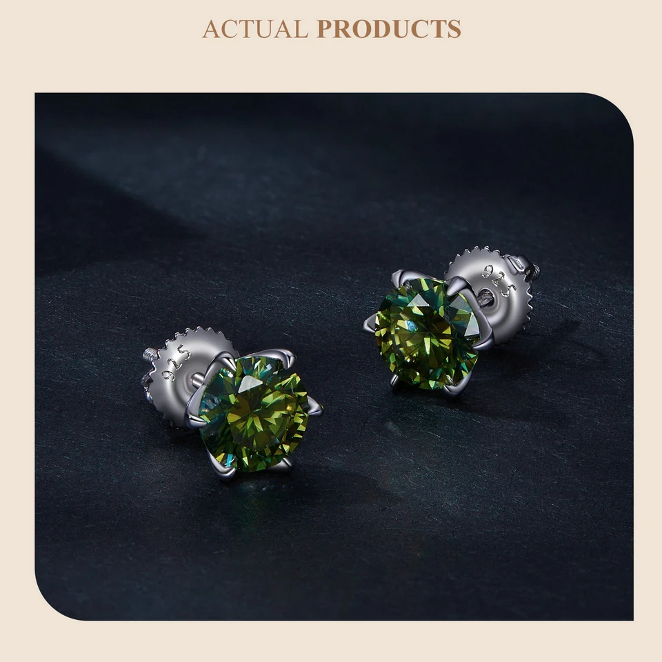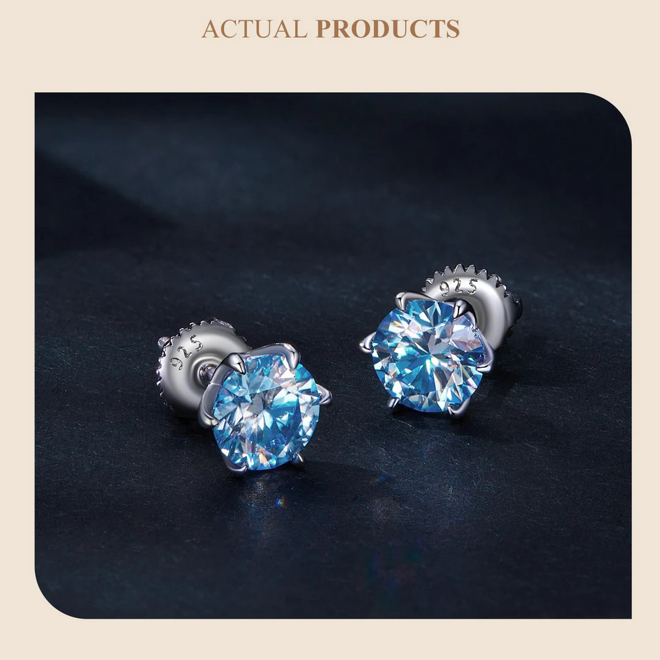 Bamoer D VVS1 Lab Diamonds Minimalist Green and Blue Moissanite Stud Earrings for Women 925 Sterling Silver Wedding Jewelry