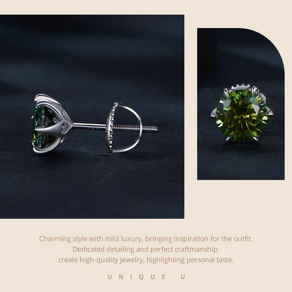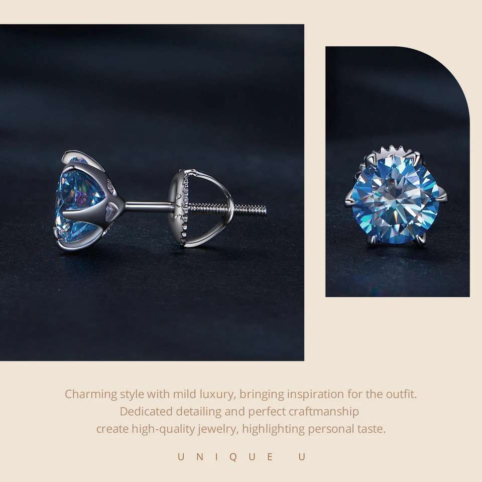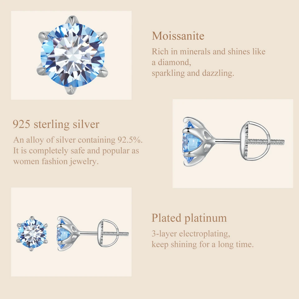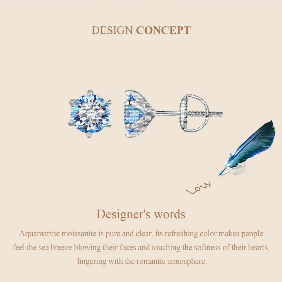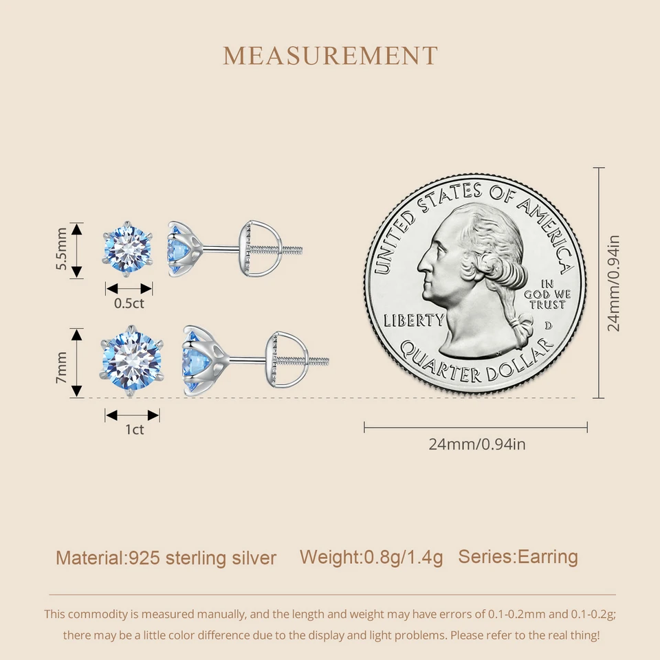 Bamoer D VVS1 Lab Diamonds Minimalist Green and Blue Moissanite Stud Earrings for Women 925 Sterling Silver Wedding Jewelry
