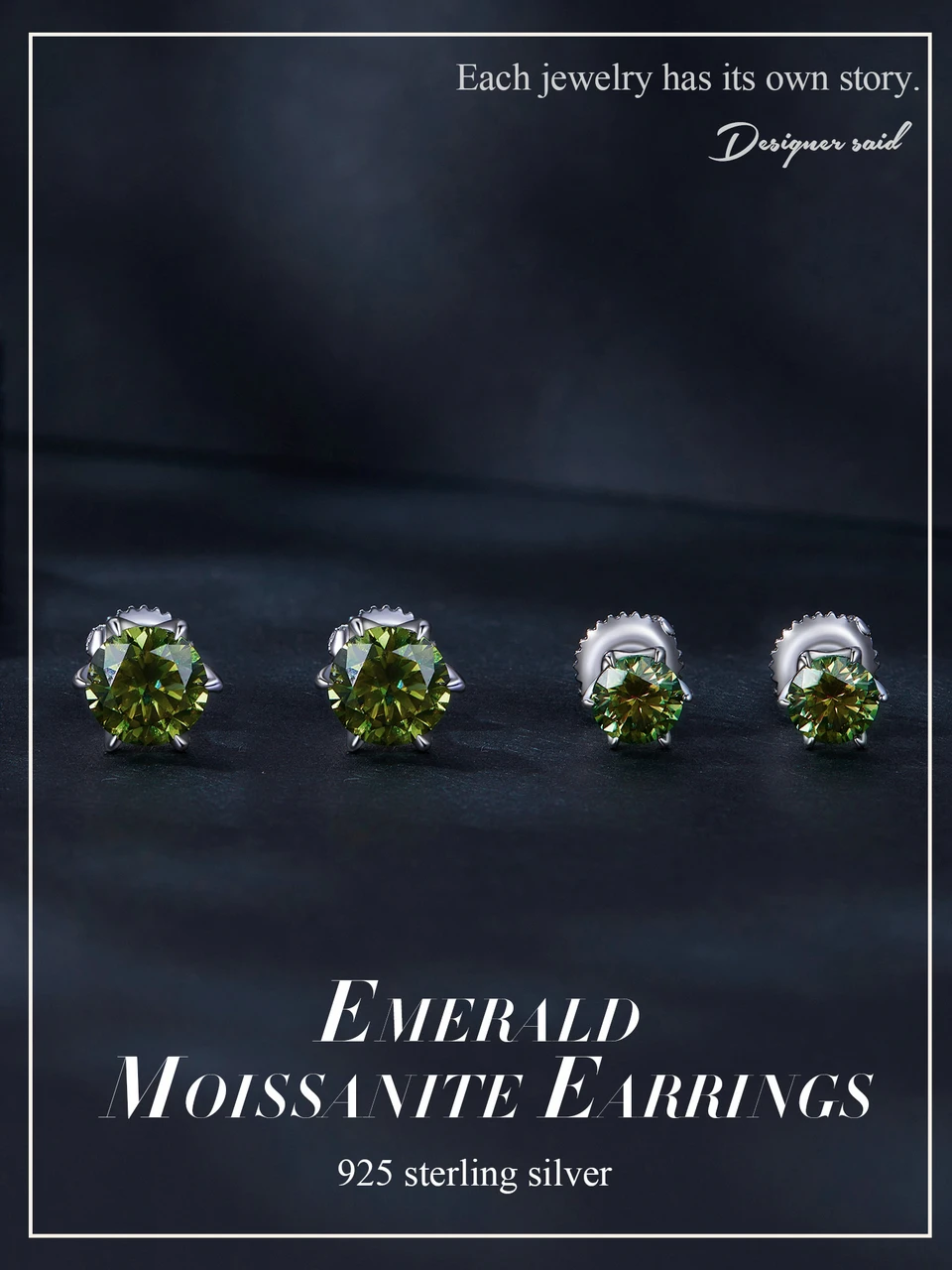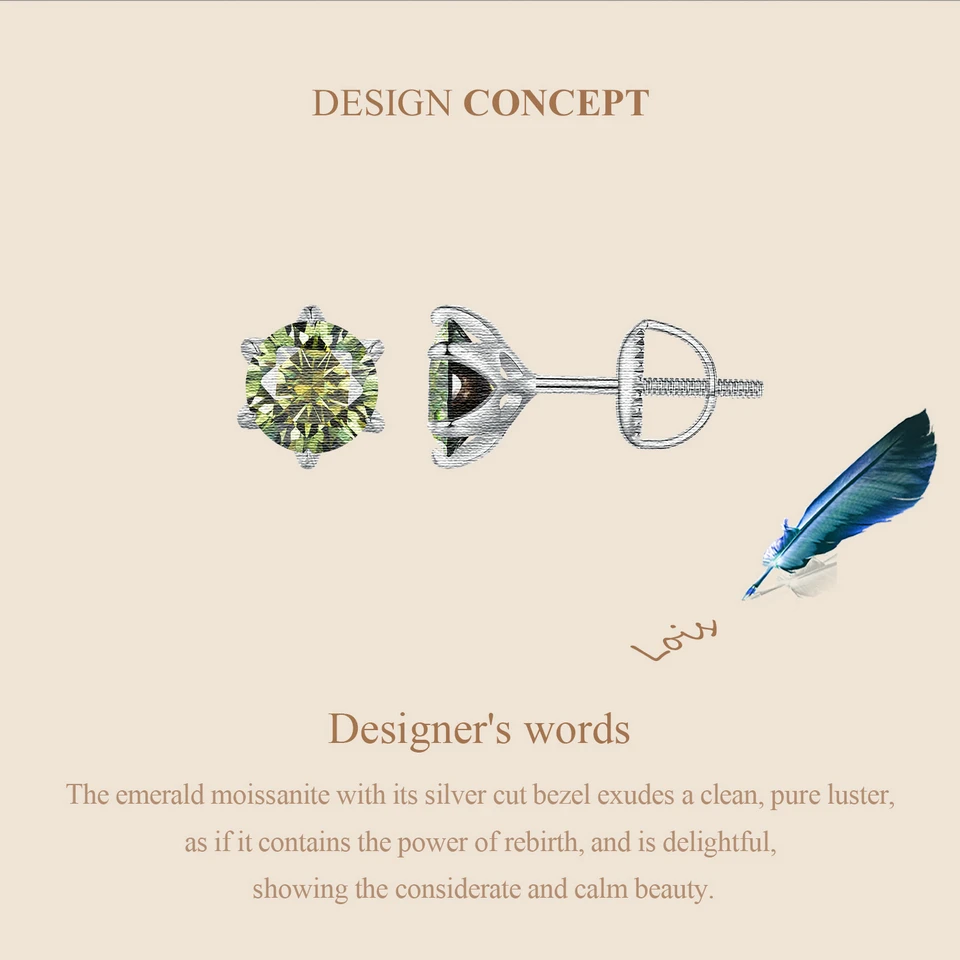 ❤ [Description] The emerald moissanite with its silver cut bezel exudes a clean, pure luster, as if it contains the power of rebirth, and is delightful, showing considerate and calm beauty.