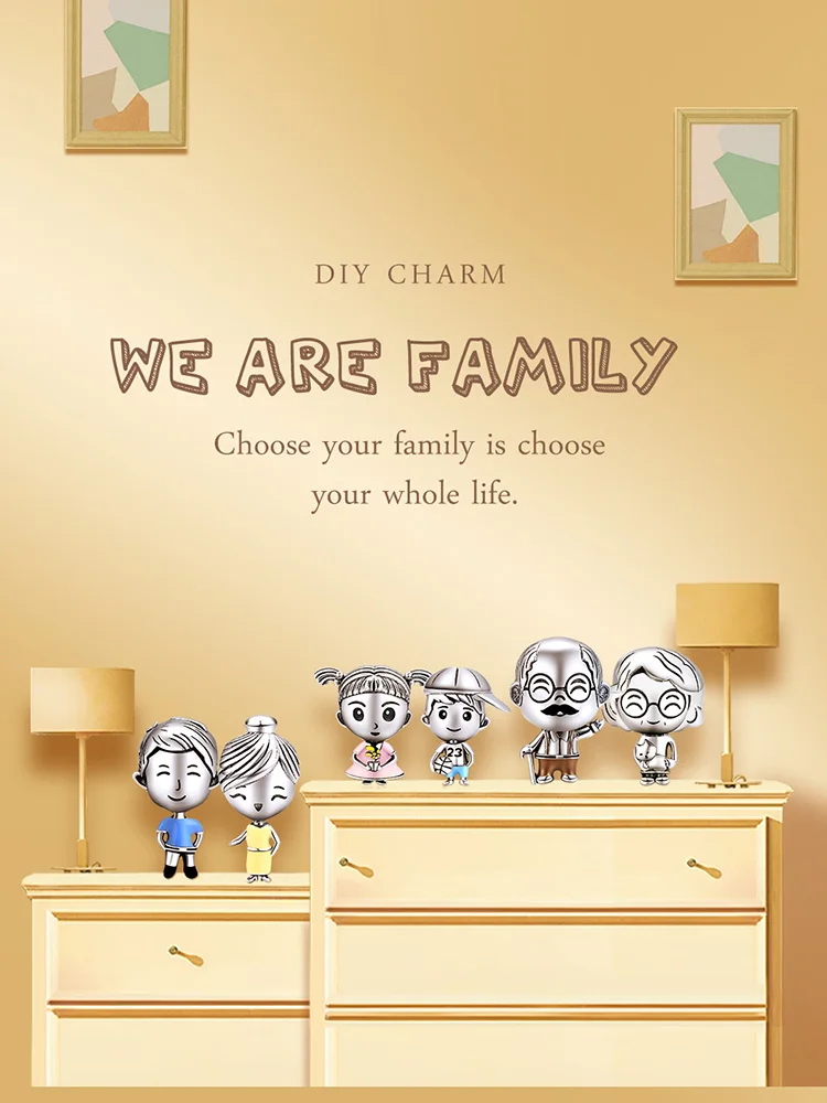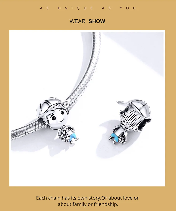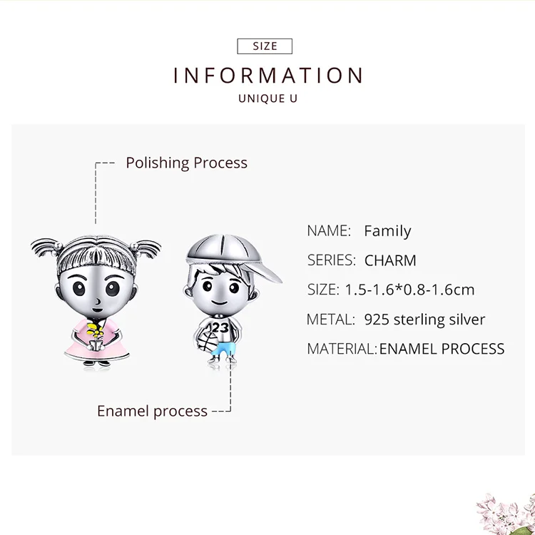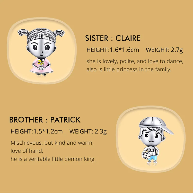 bamoer Family Colleciton Sister & Brother 925 Sterling Silver Charm fit Original Snake Bracelet for Women DIY Bracelet BSC172