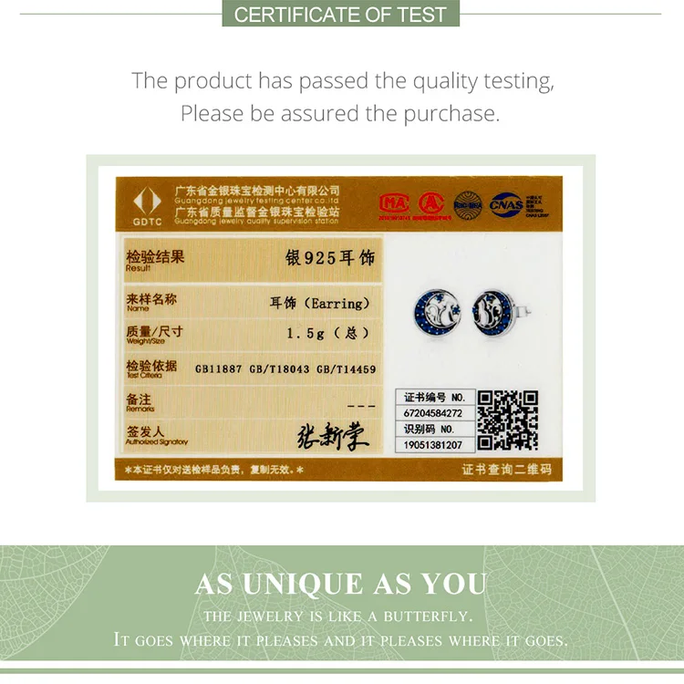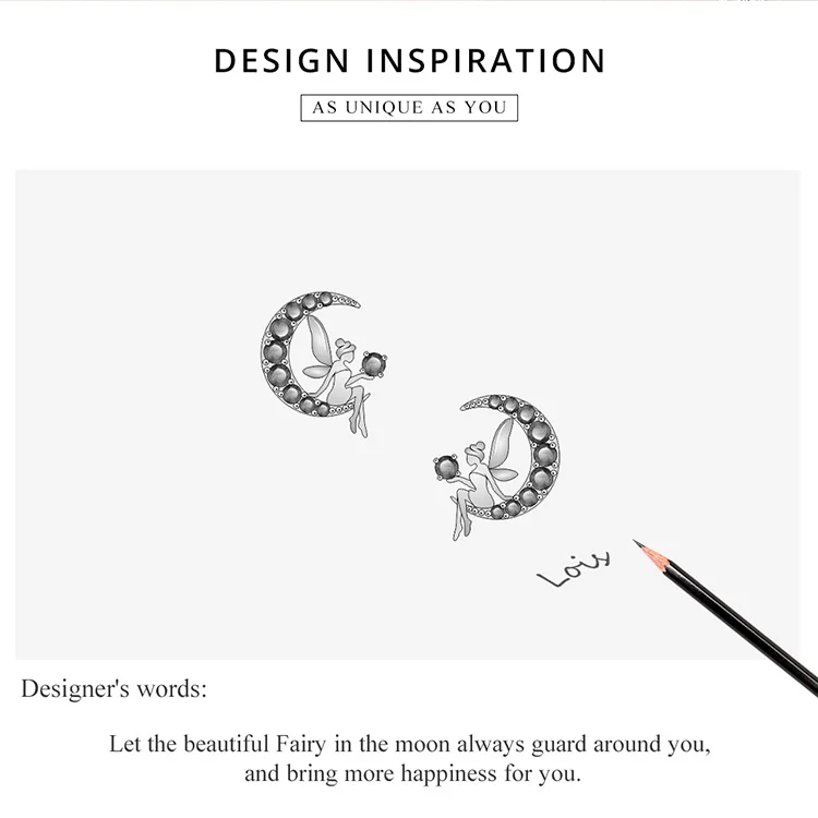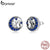 Bamoer Genuine 925 Sterling Silver Blue Zircon Crescent Moon Stud Earrings Cat on the Moon Fairy Ear Pins for Women SCE880