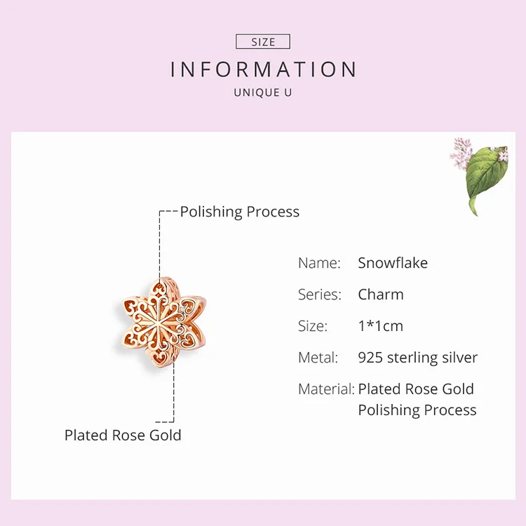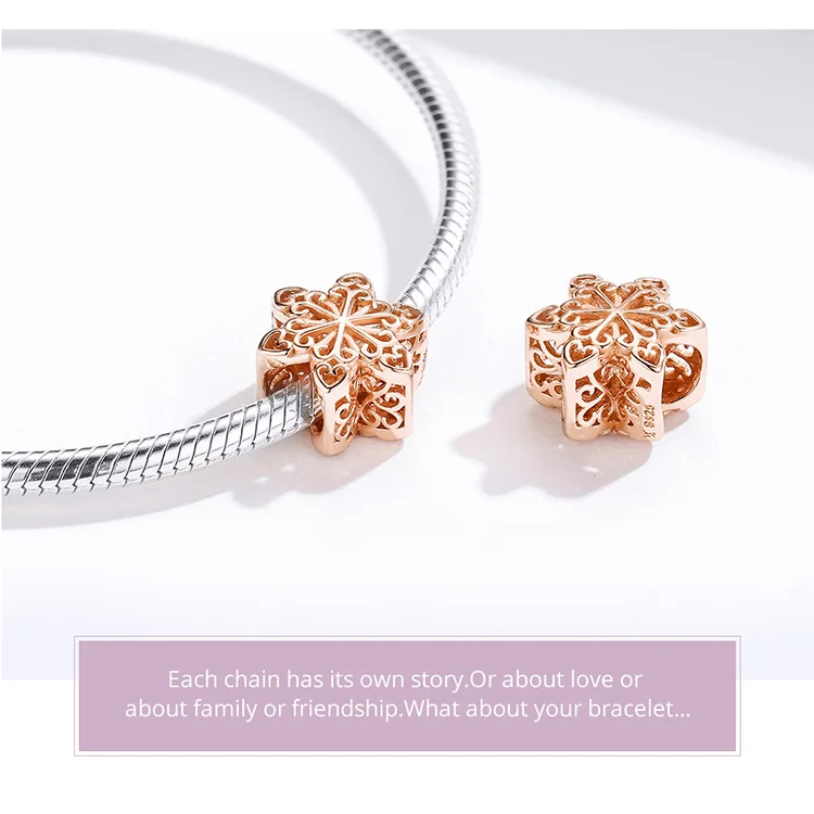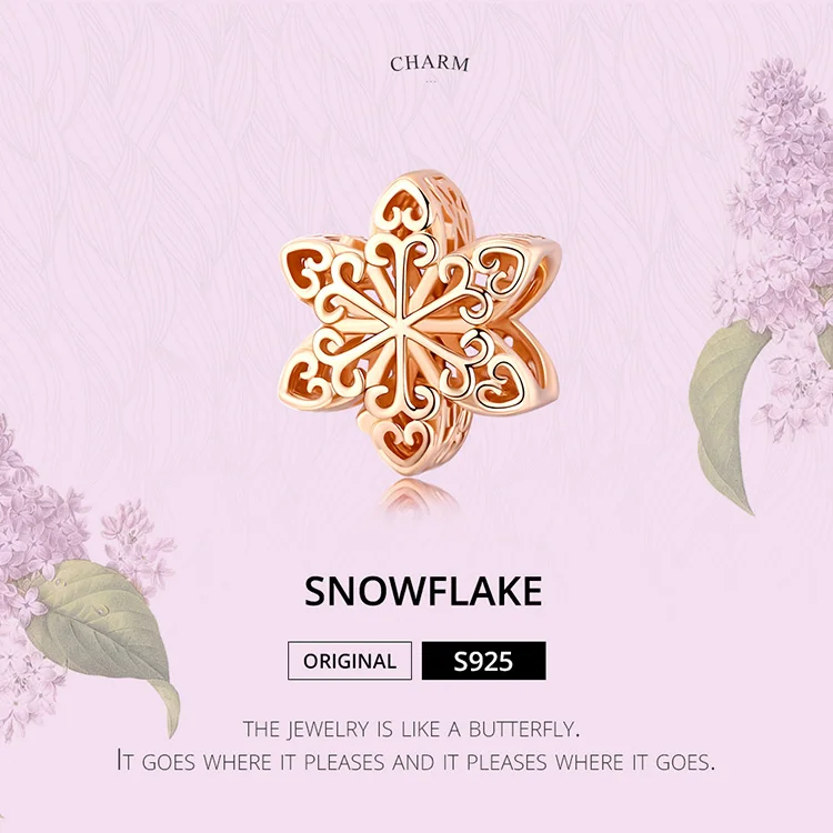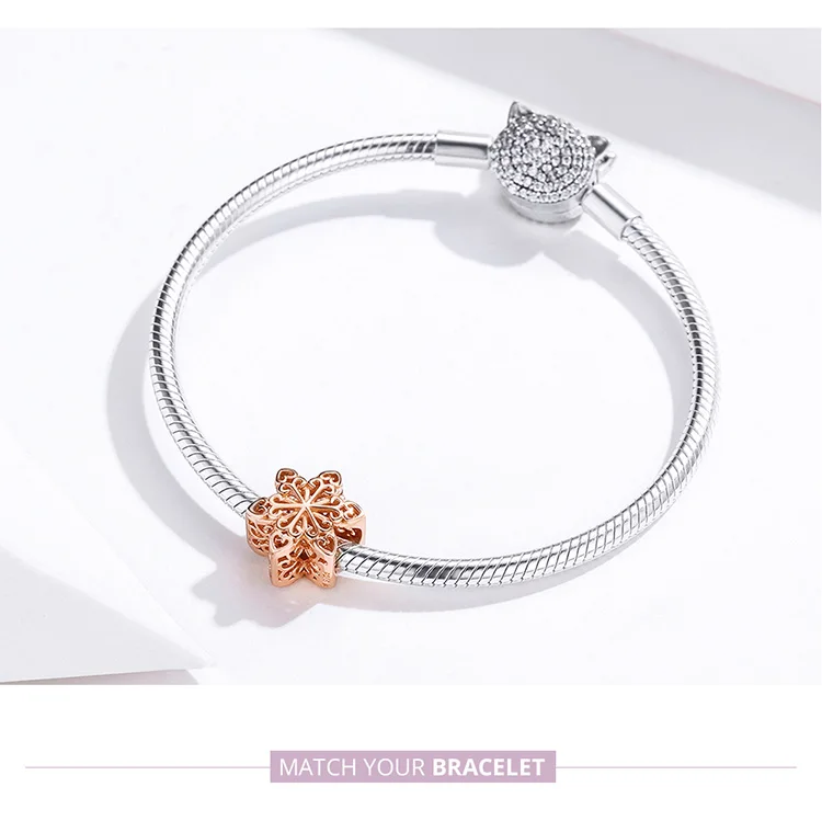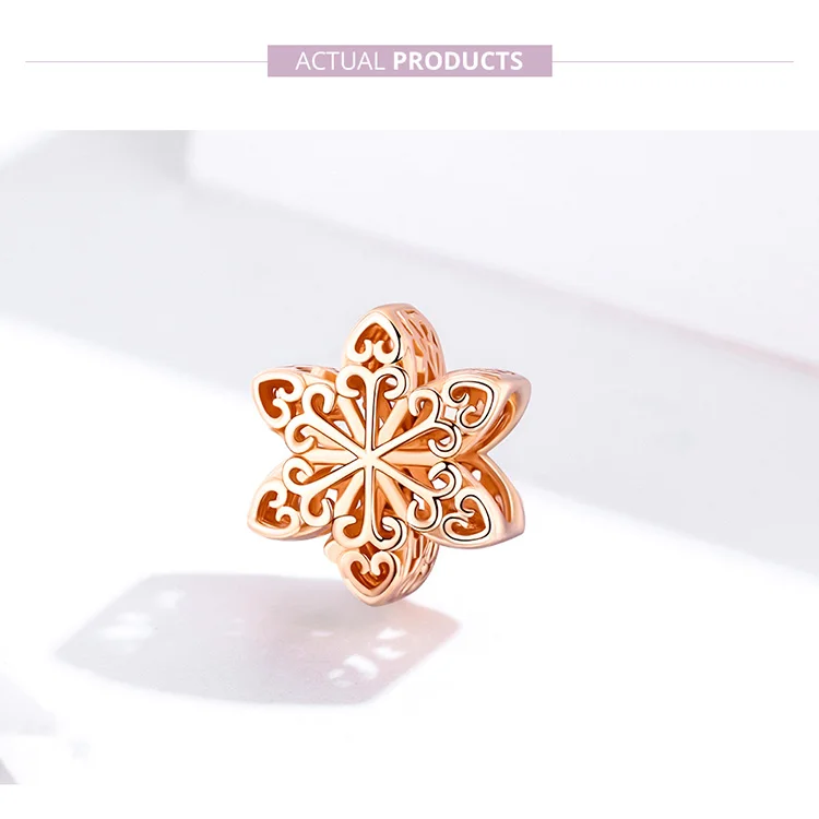 BAMOER Genuine 925 Sterling Silver Elegant Snowflake Openwork Beads fit Women Charm Bracelets & Necklace DIY Jewelry SCC719