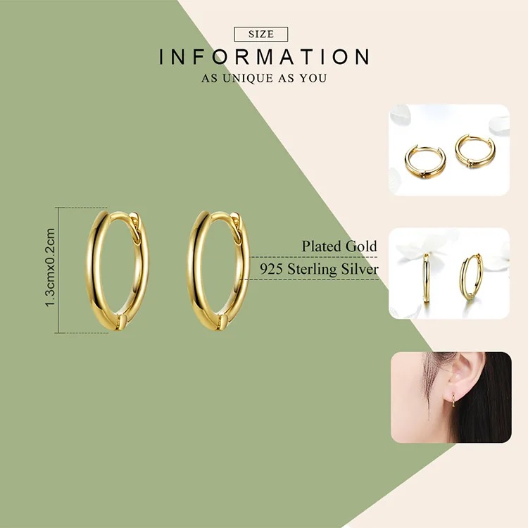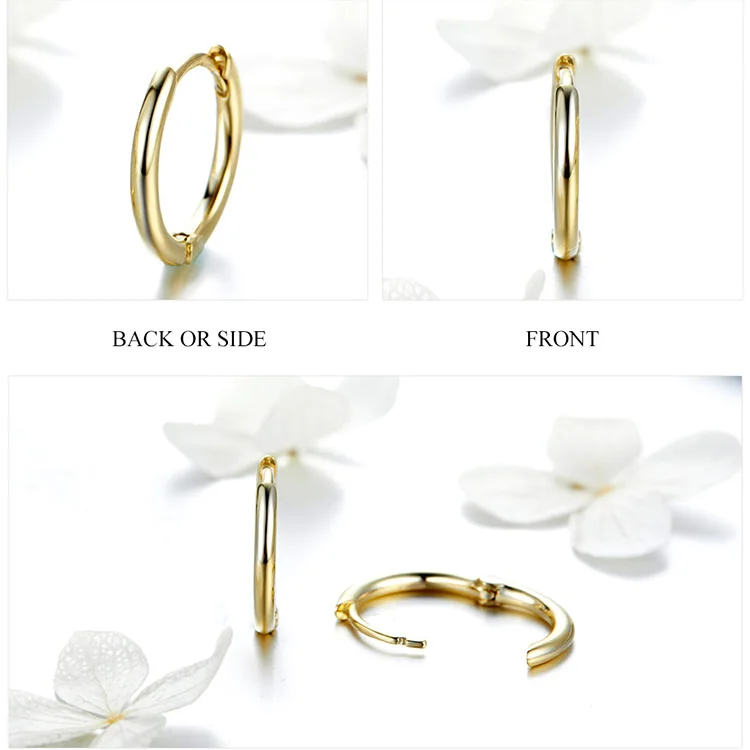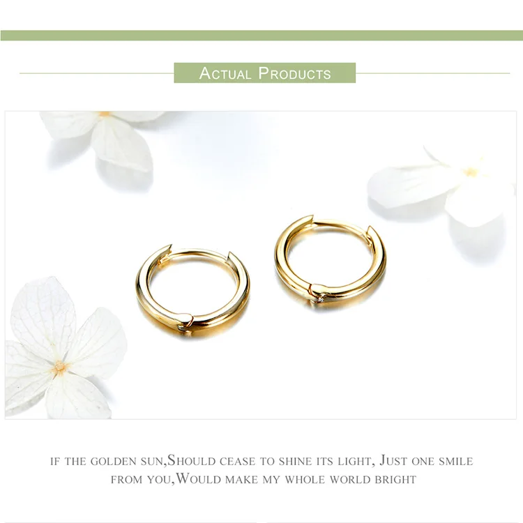 BAMOER Genuine 925 Sterling Silver Round Circle Hoop Earrings for Women Gold Color Earrings Sterling Silver Jewelry Gift SCE498
