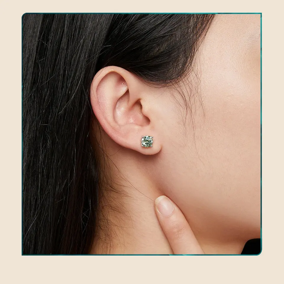 ❤ [Description] The platinum-plated earrings with sparkling moissanite are small yet exquisite, simple yet fashionable. The shimmering light in the ear is always charming.