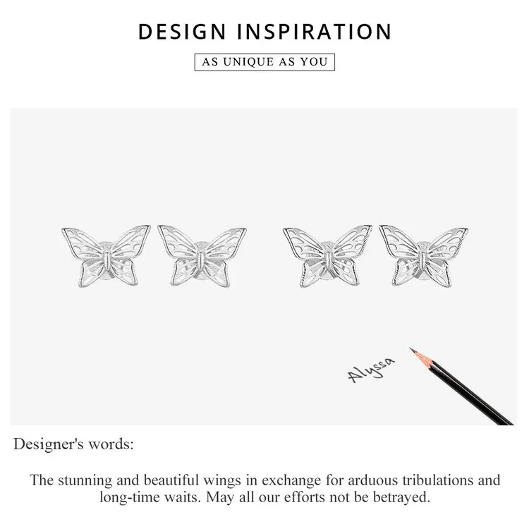 BAMOER Insect Collection 925 Sterling Silver Butterfly Dream Exquisite Stud Earrings for Women Sterling Silver Jewelry SCE452