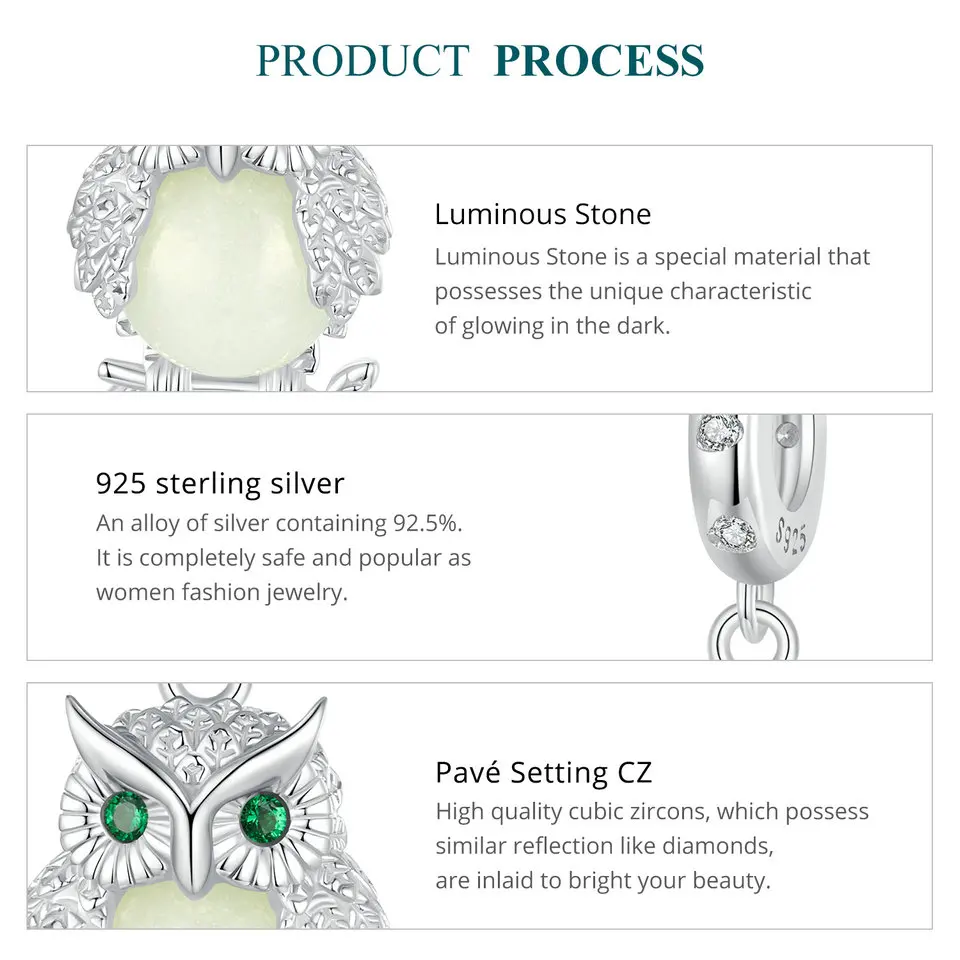 ❤ [Material] 925 Sterling Silver & Pavé Setting CZ & Luminous Stone & Plated platinum, this silver charm is Nickel-free, Lead-free, Cadmium-free, Hypoallergenic. Quality Assurance, good skin-friendly, convenient and comfortable to wear, not harmful for your health.