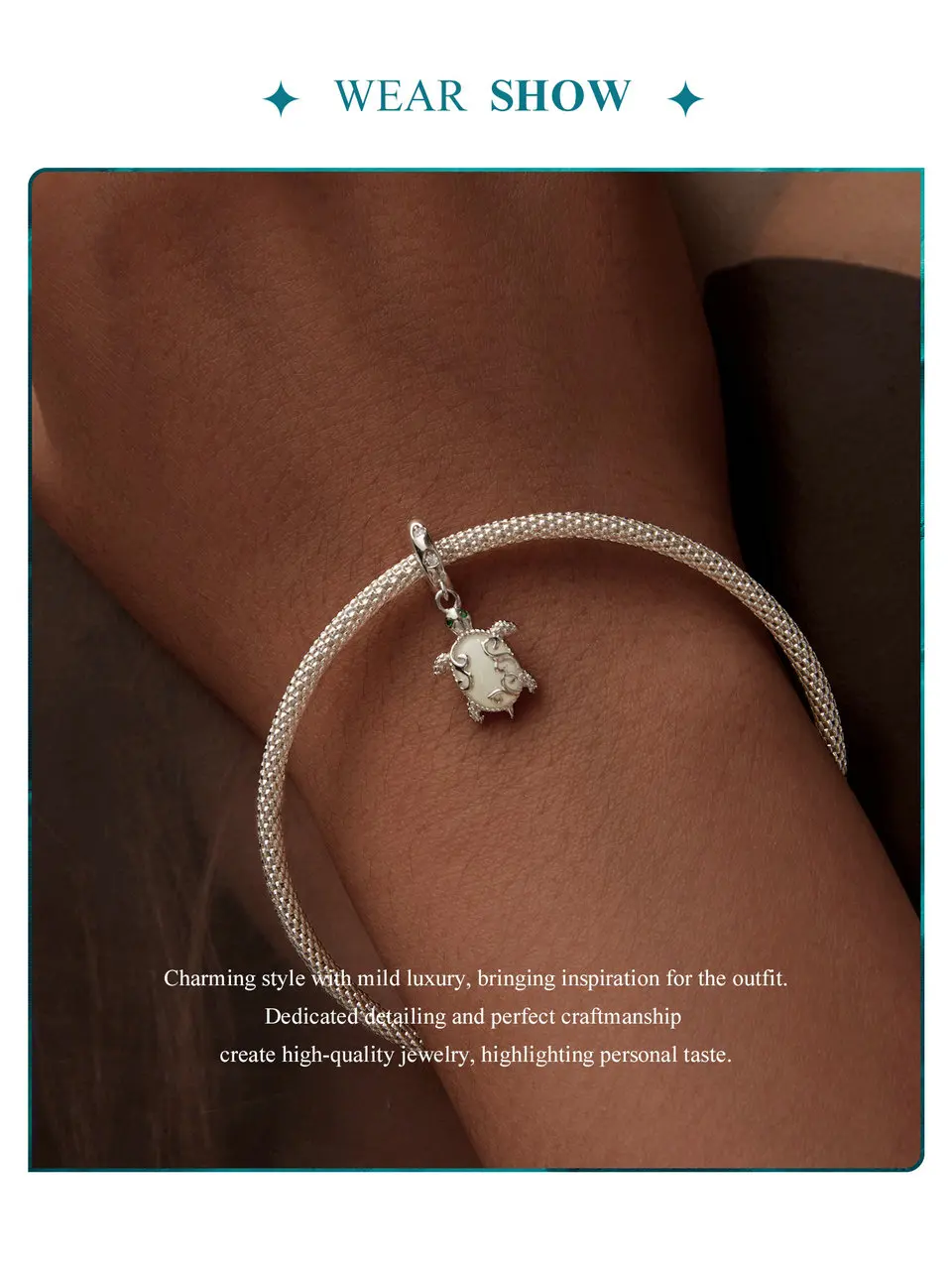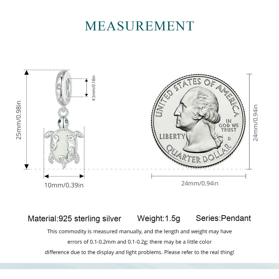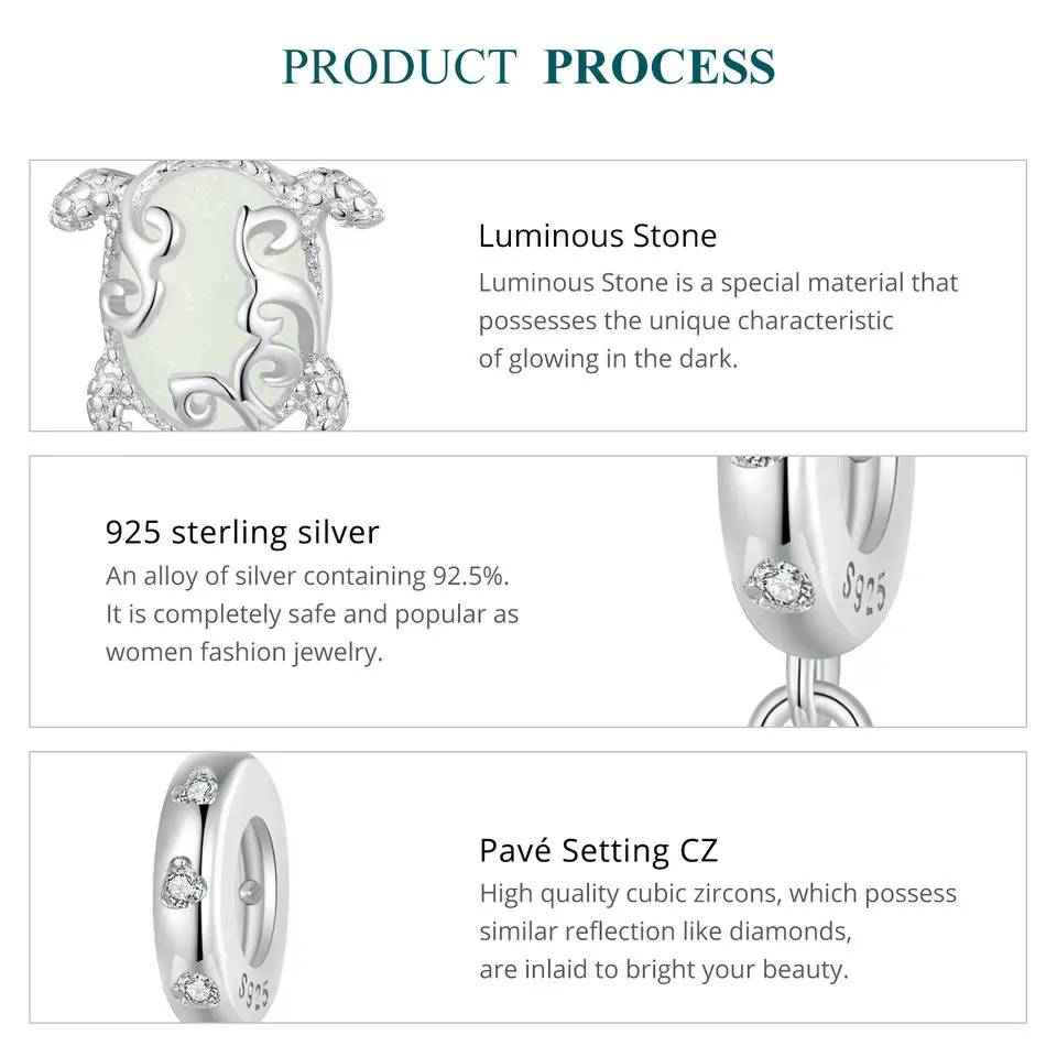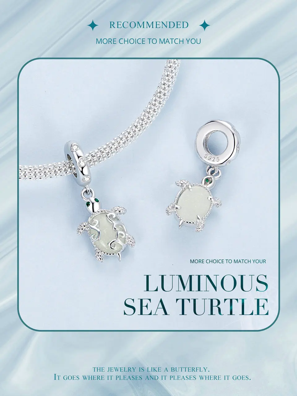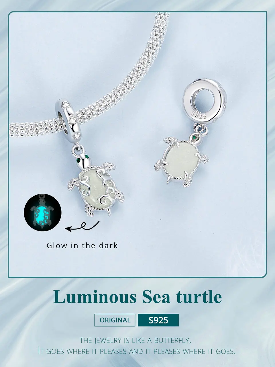 BAMOER Luminous Charms Beads 925 Sterling Silver Sea Turtle Pendant Dangle Fit Original Charm Bracelet Jewelry DIY Accessories