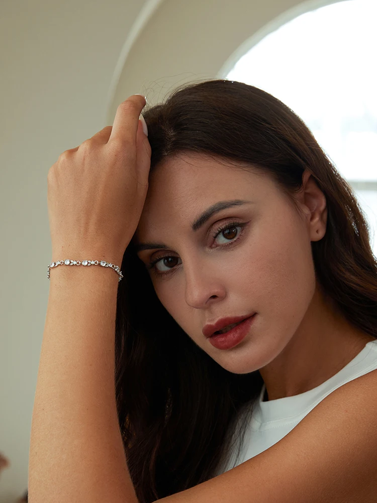 BAMOER Luxury Rose Gold Color Chain Link Bracelet for Women Ladies Shining AAA Cubic Zircon Crystal Jewelry JIB013