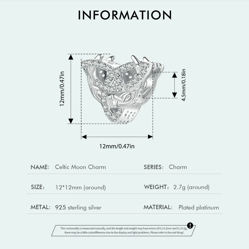 ❤ [Description] The charm combined the Celtic knot and a moon design, accented with shimmering zirconia, symbolizing endless vitality and affection.