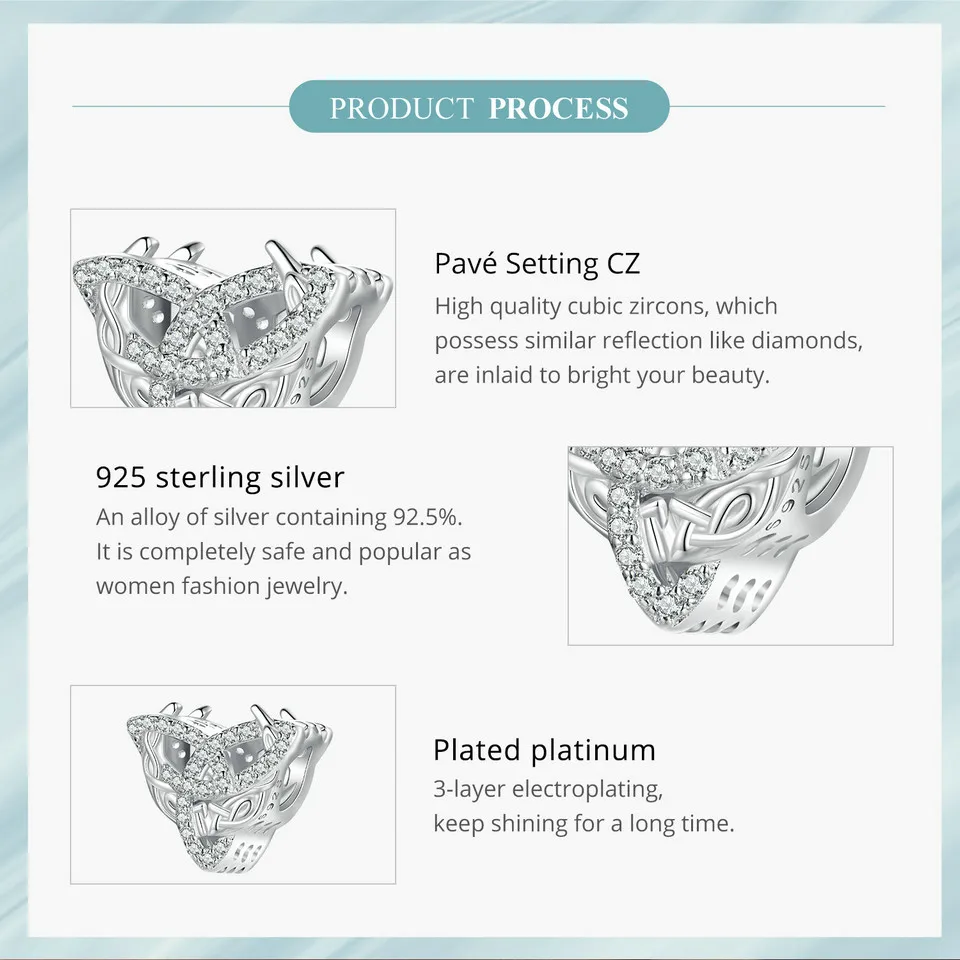 ❤ [Material] 925 Sterling Silver & Pavé Setting CZ & Plated platinum, this silver charm is Nickel-free, Lead-free, Cadmium-free, Hypoallergenic. Quality Assurance, good skin-friendly, convenient and comfortable to wear, not harmful for your health.