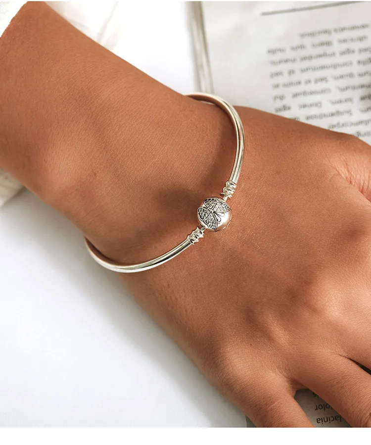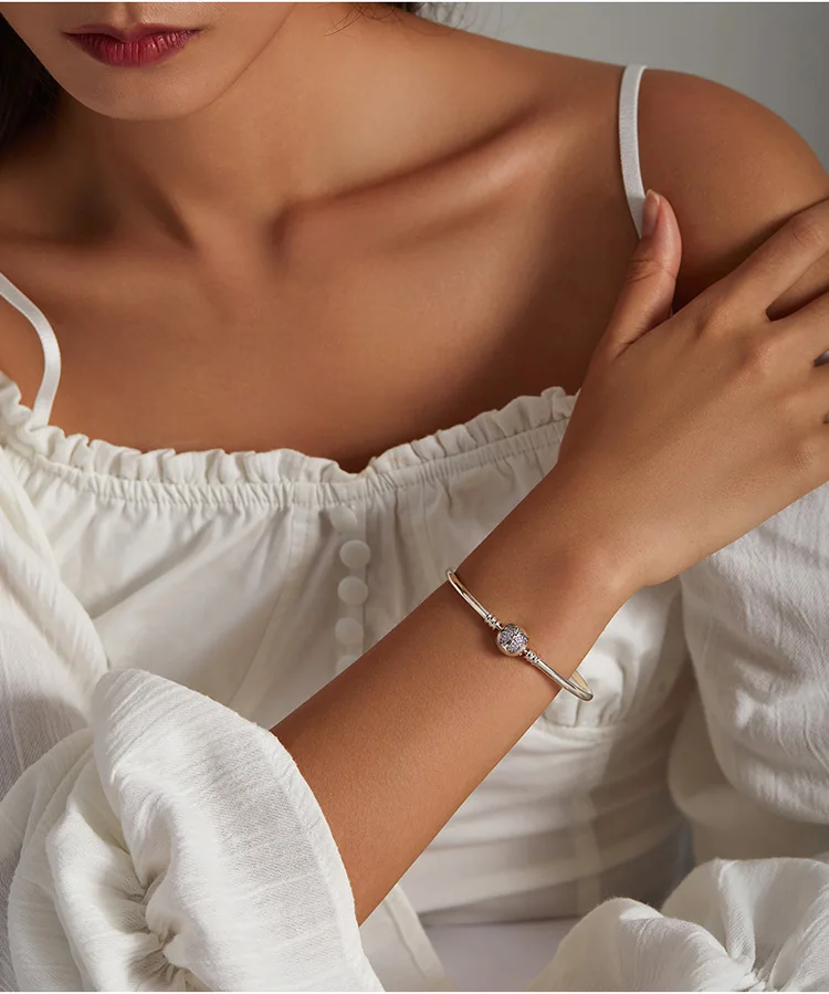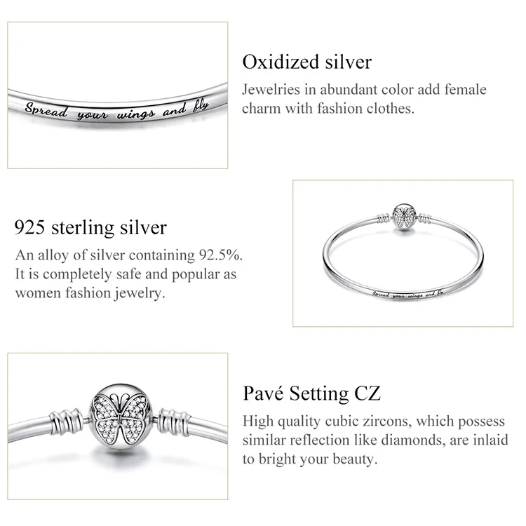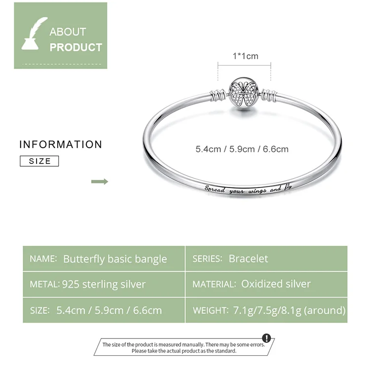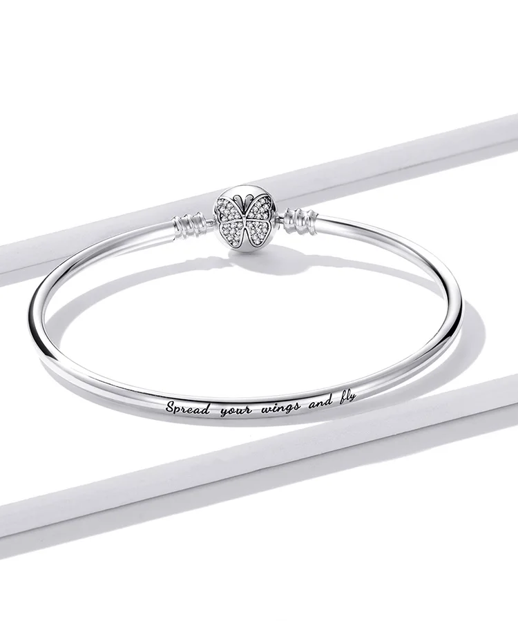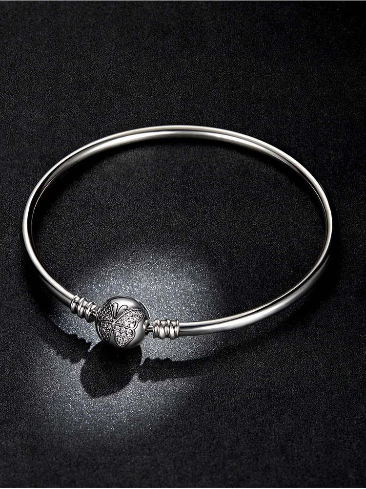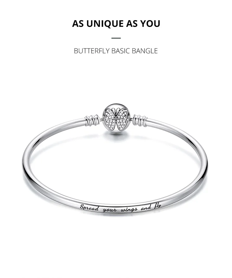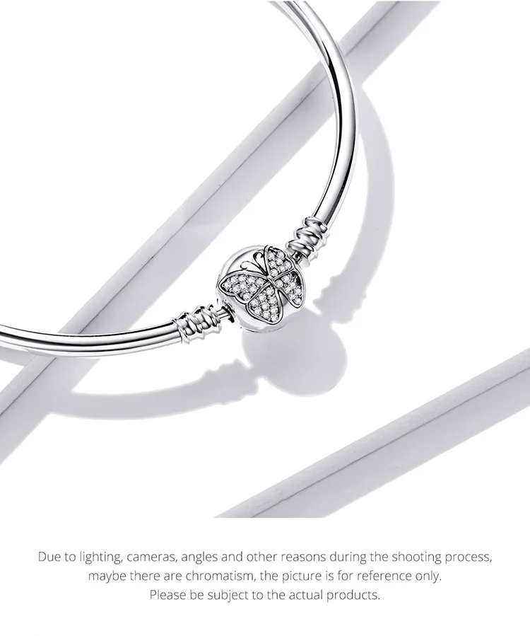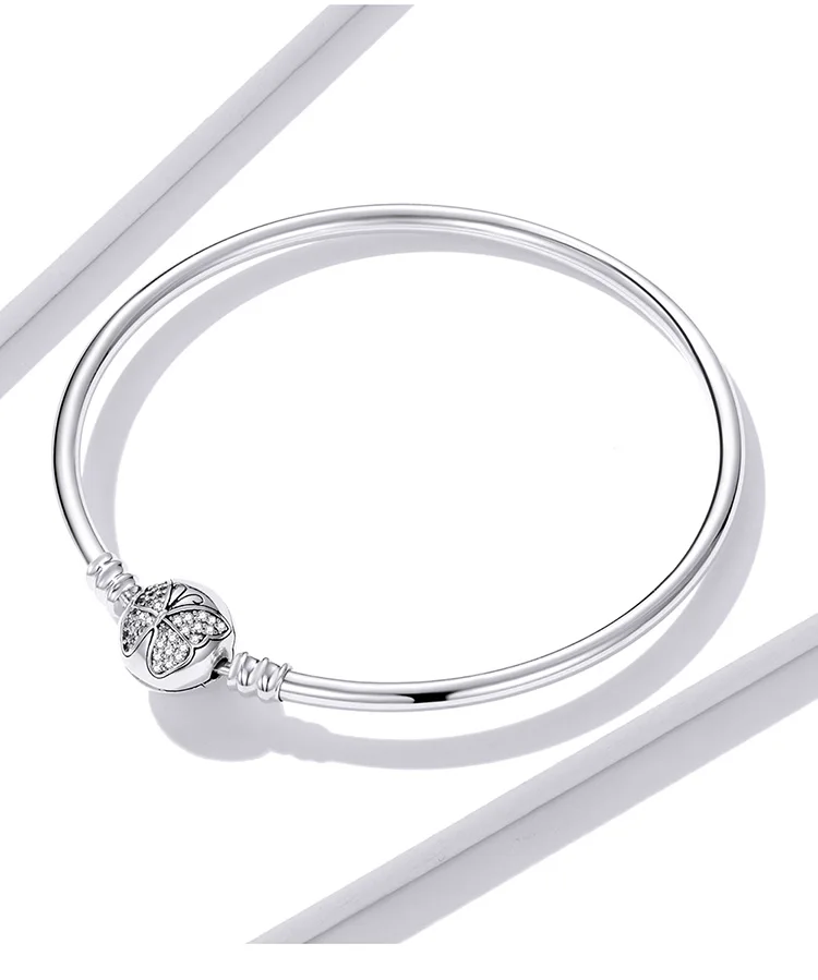 bamoer New Arrival Authentic 925 Sterling Silver Dazzling Butterfly Simple Basic Bangle Bracelet for Women Silver Jewelry Gift