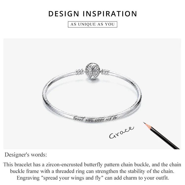 ❤ 【Description】 This bracelet has a zircon-encrusted butterfly pattern chain buckle, and the chain buckle frame with a threaded ring can strengthen the stability of the chain. Engraving "spread your wings and fly" can add charm to your outfit.