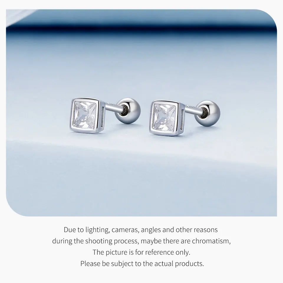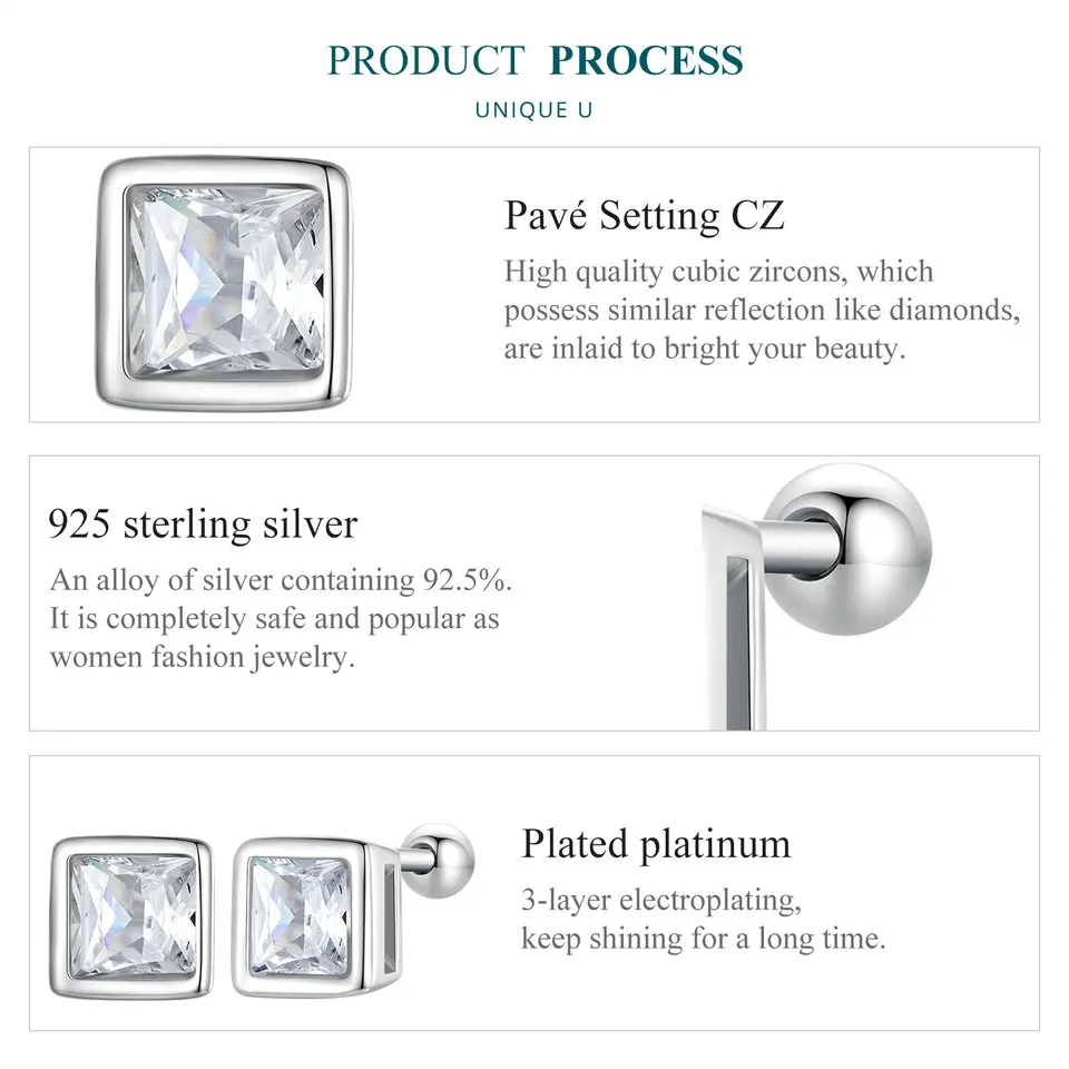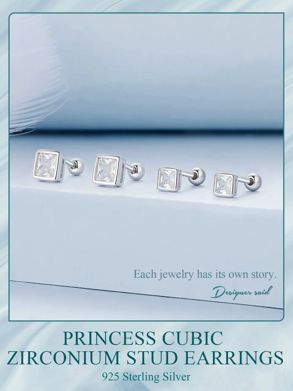 BAMOER Platinum Plated Princess Cut Clear Cubic Zirconia 925 Sterling Silver Stud Earring Fashion Jewellry