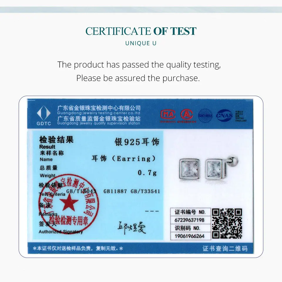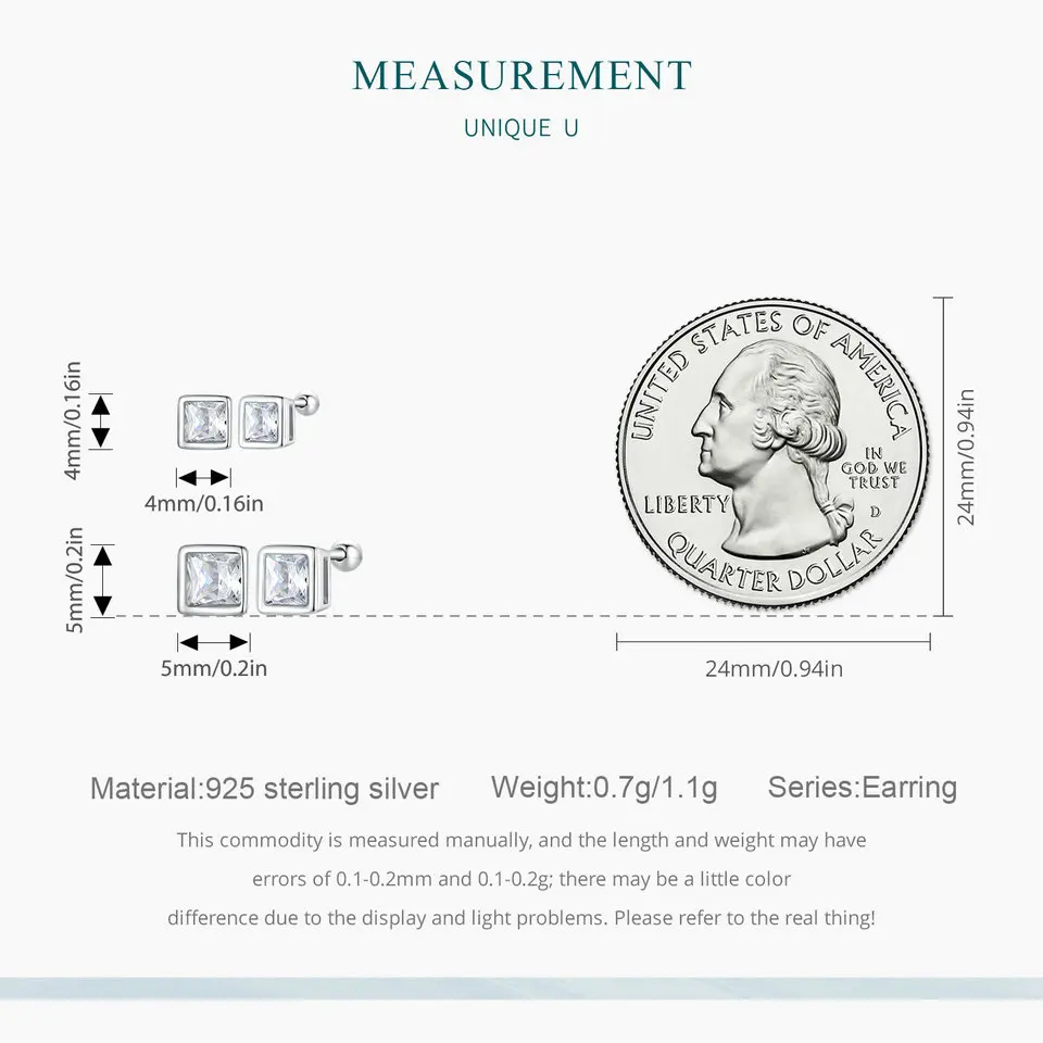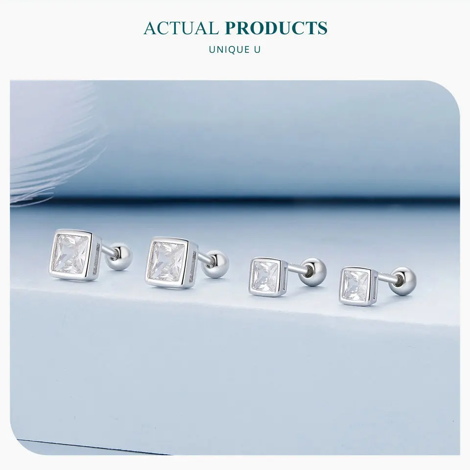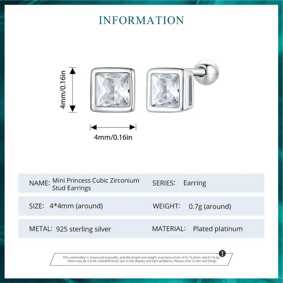 BAMOER Platinum Plated Princess Cut Clear Cubic Zirconia 925 Sterling Silver Stud Earring Fashion Jewellry