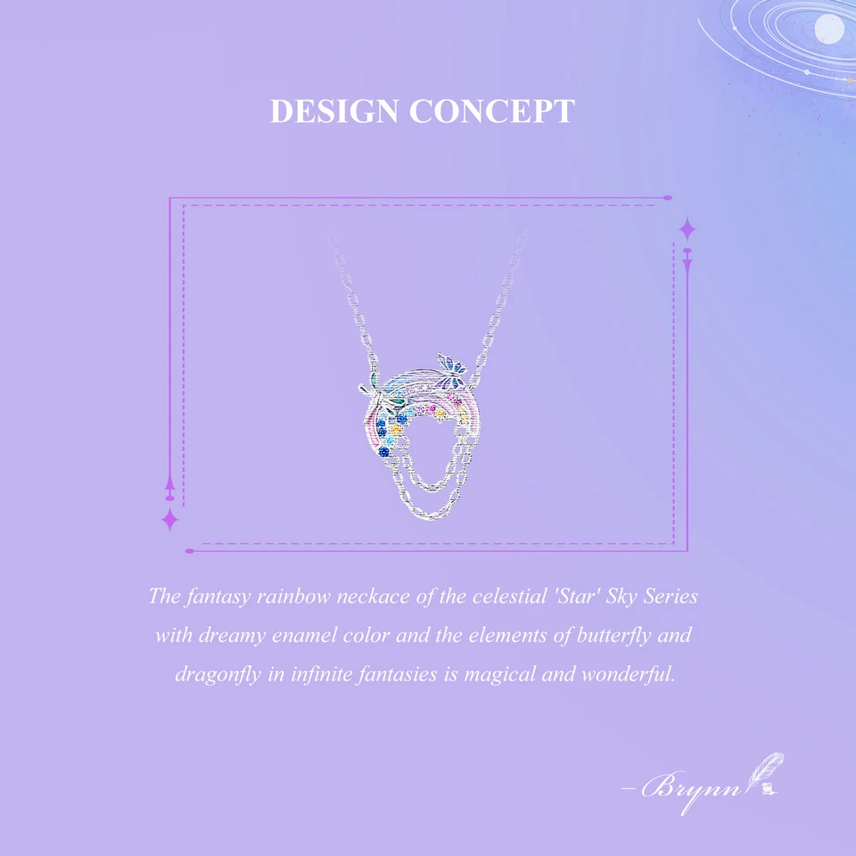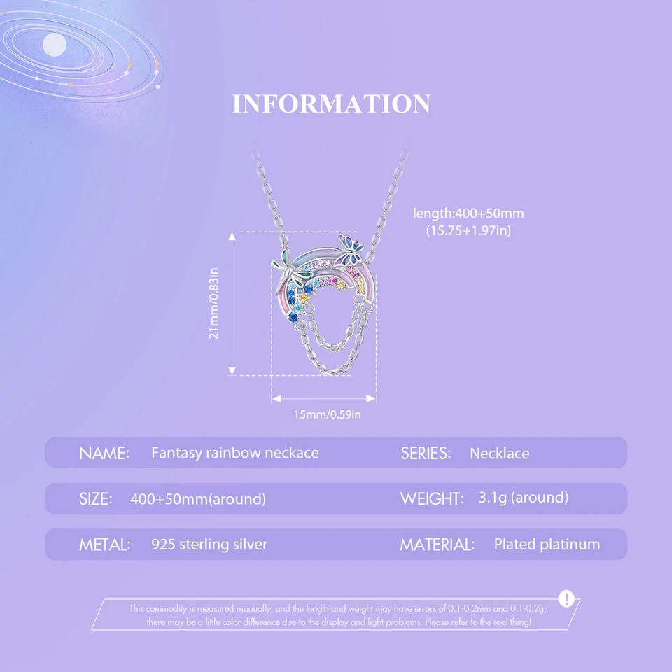 ❤ 【Description】The fantasy rainbow neckace of the celestial 'Star' Sky Series with dreamy enamel color and the elements of butterfly and dragonfly in infinite fantasies is magical and wonderful.