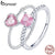 bamoer Real 925 Sterling Silver Pink Love CZ Ring For Fashion Women Cute Fine Jewelry Wedding Accessories Gift BSR157