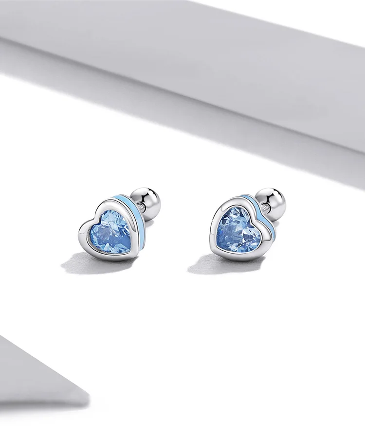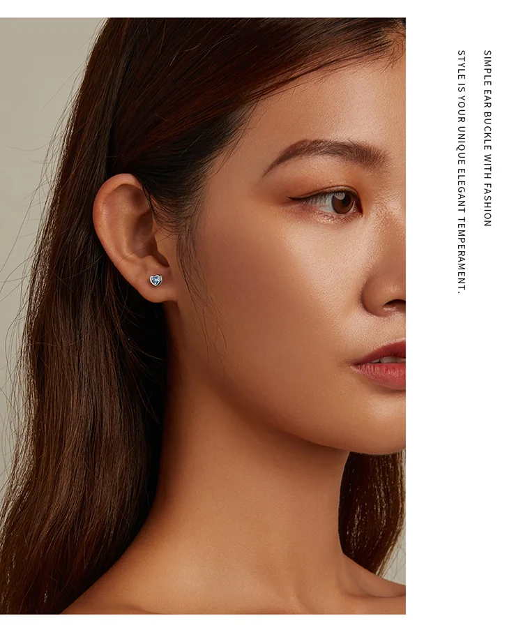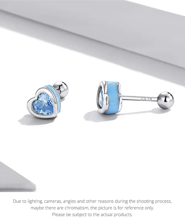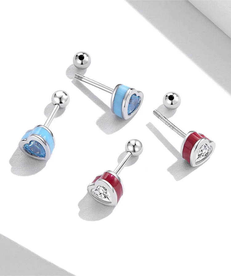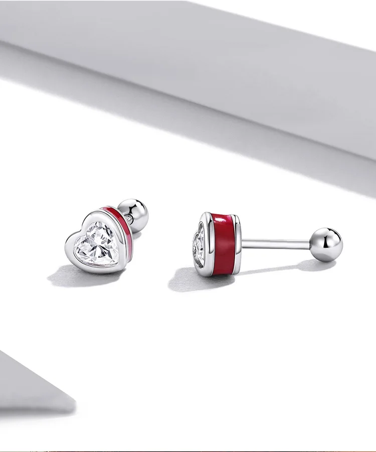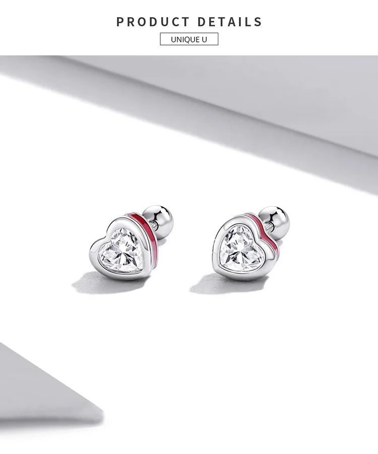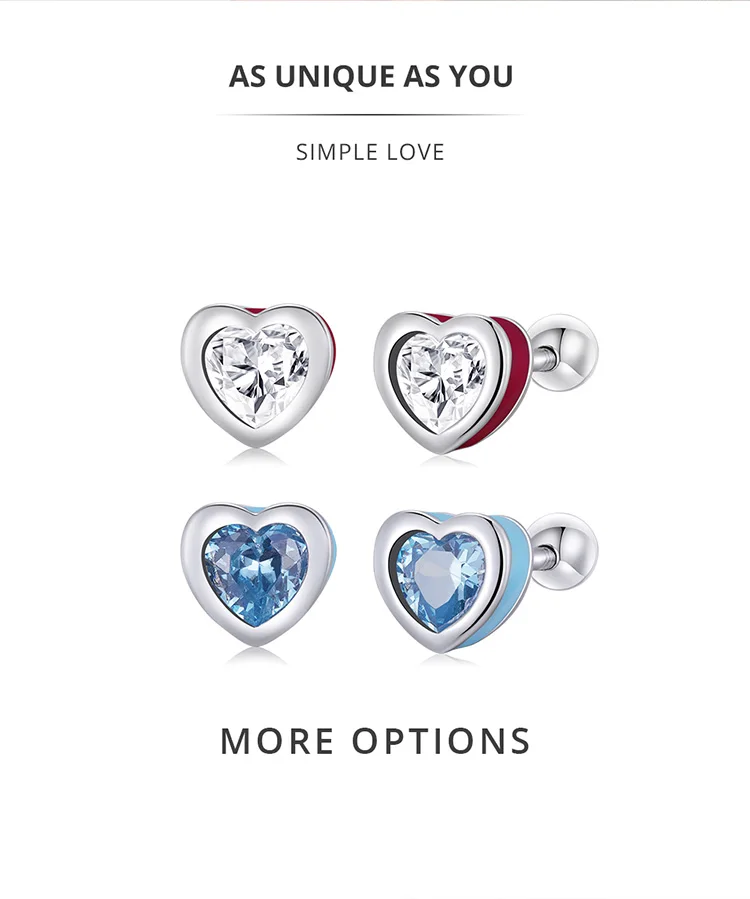 Bamoer Real 925 Sterling Silver Simple Love Earrings for Women Heart-Shaped Stud Earrings Two Colors Fine Jewelry Wedding Gift