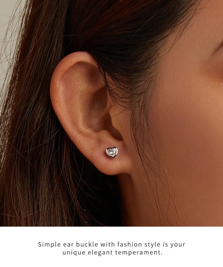 ❤ [Description] The heart-shaped stud earrings in bright color are small yet exquisite. With heart-shaped zircon inlaid in the middle, they are stylish, unique, and versatile.