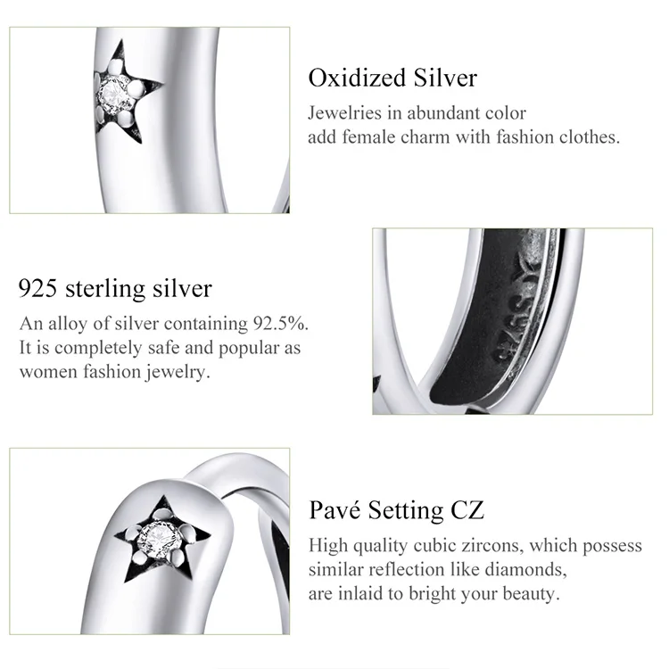 Material: S925+Oxidized silver+Pavé Setting CZ Size:1.2*0.3cm Description: The simple and romantic life that you want, all in the beautiful satrshine.