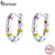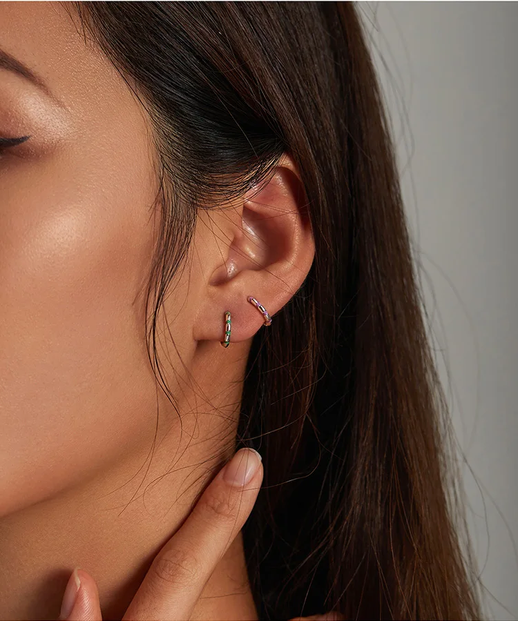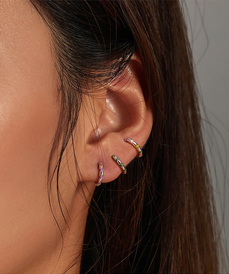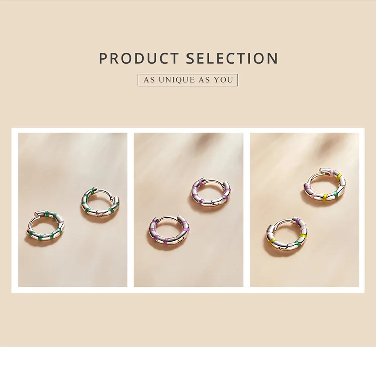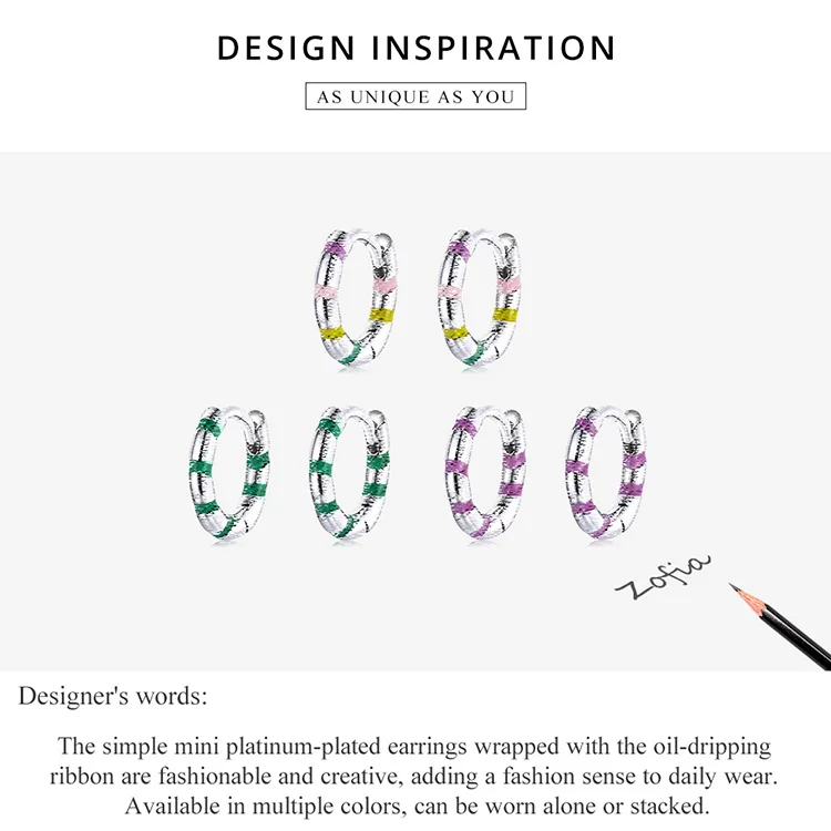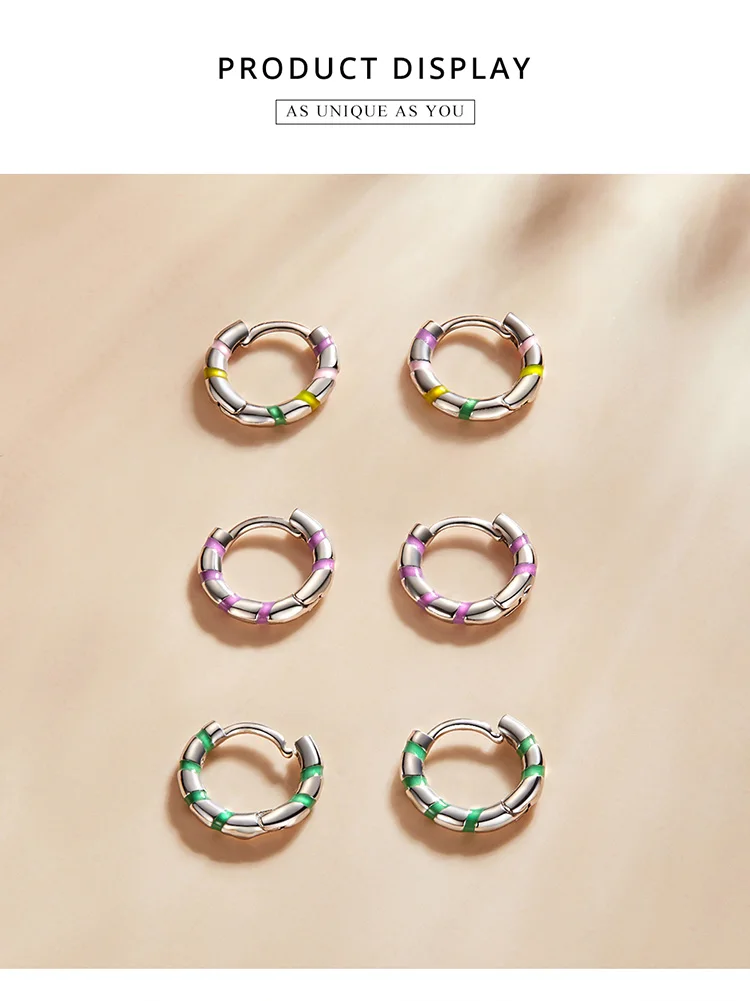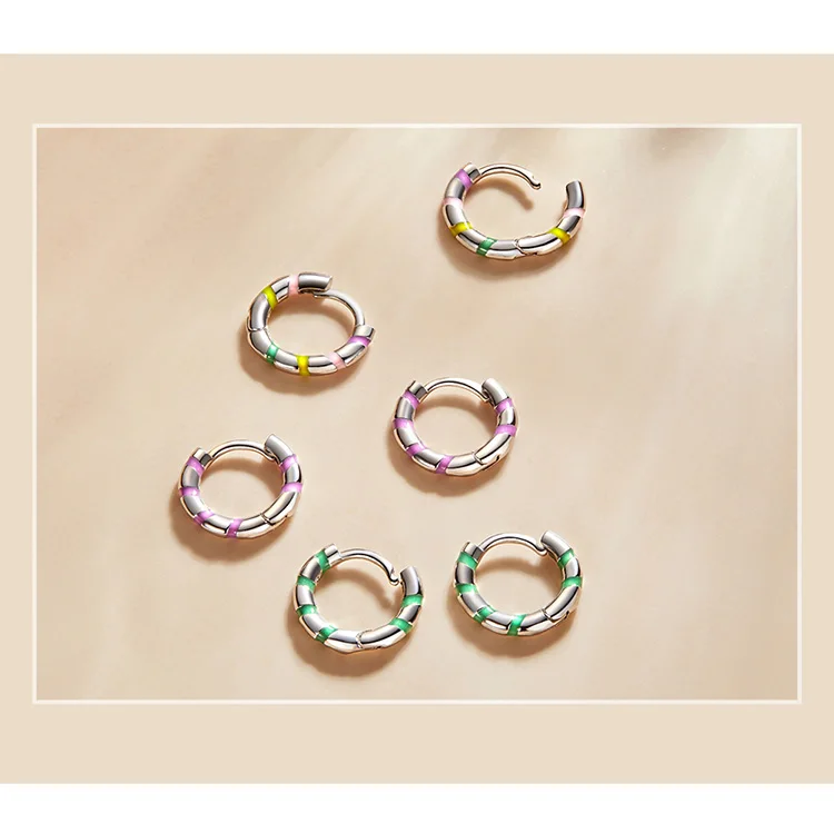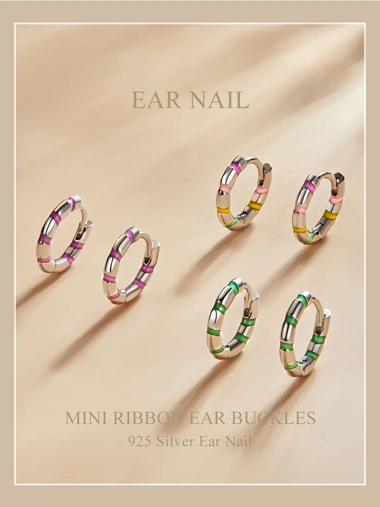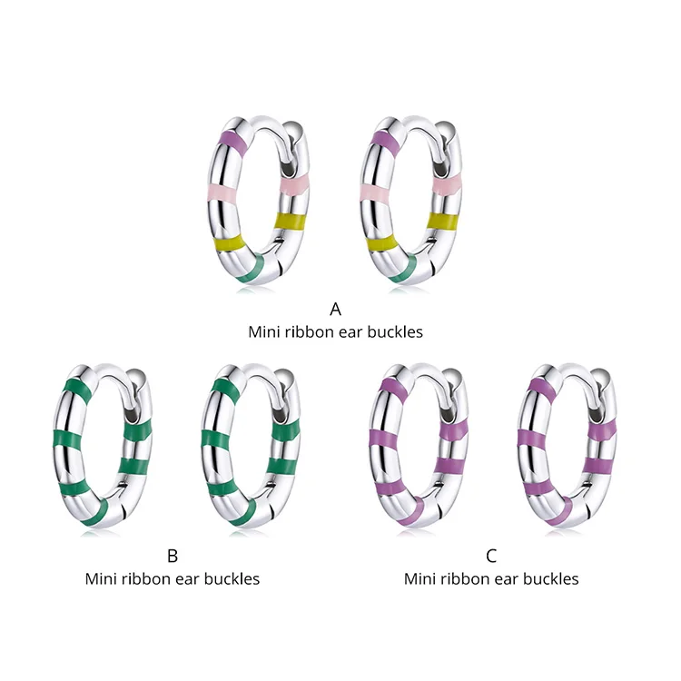 bamoer Silver Colorful Mini Ribbon Ear Buckles Rainbow 925 Sterling Silver Hoop Earrings for Women Statement Jewelry Aretes