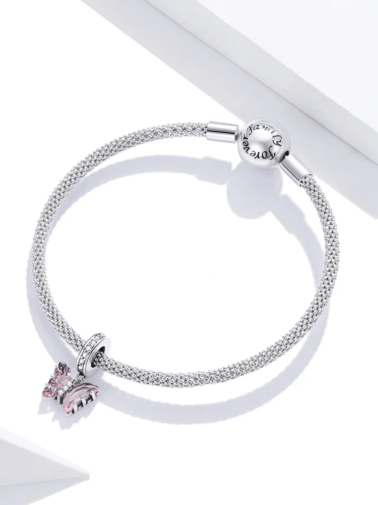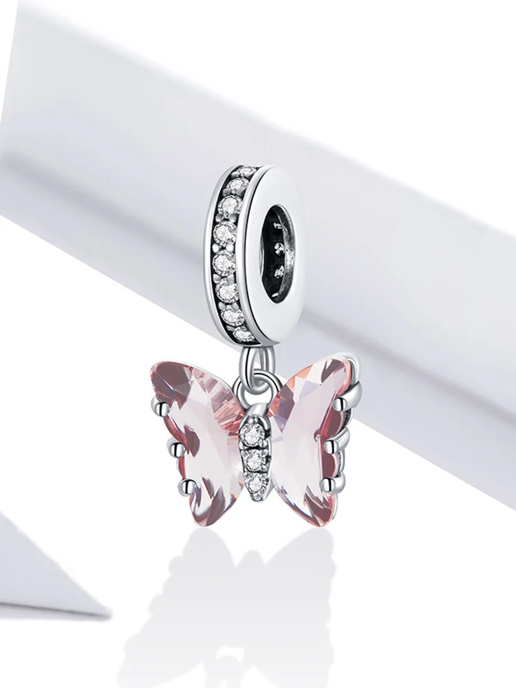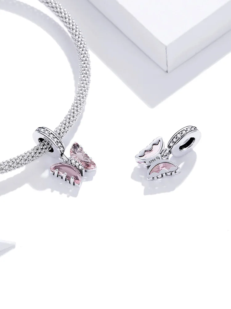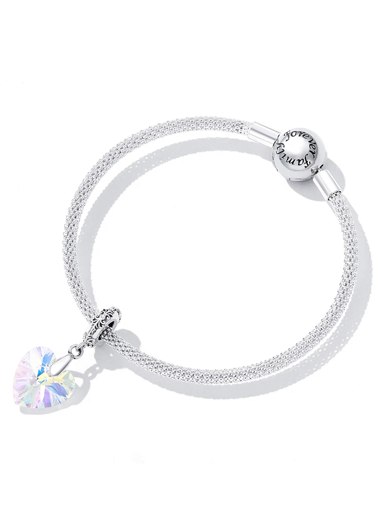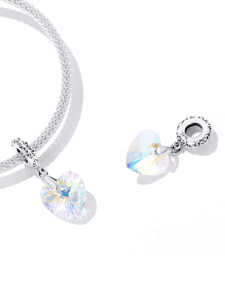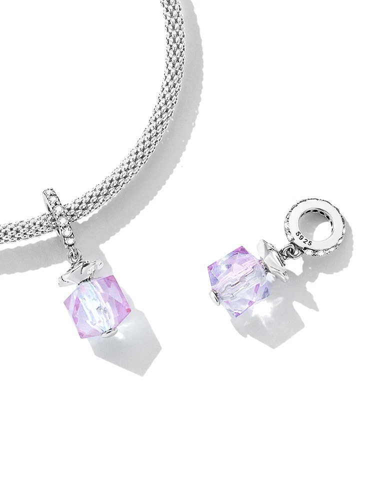 bamoer Silver Simple Purple Heart Charm Crystal Fairy Tale Love 925 Sterling Silver Charm Pendant for Bracelet Jewelry SCC1816