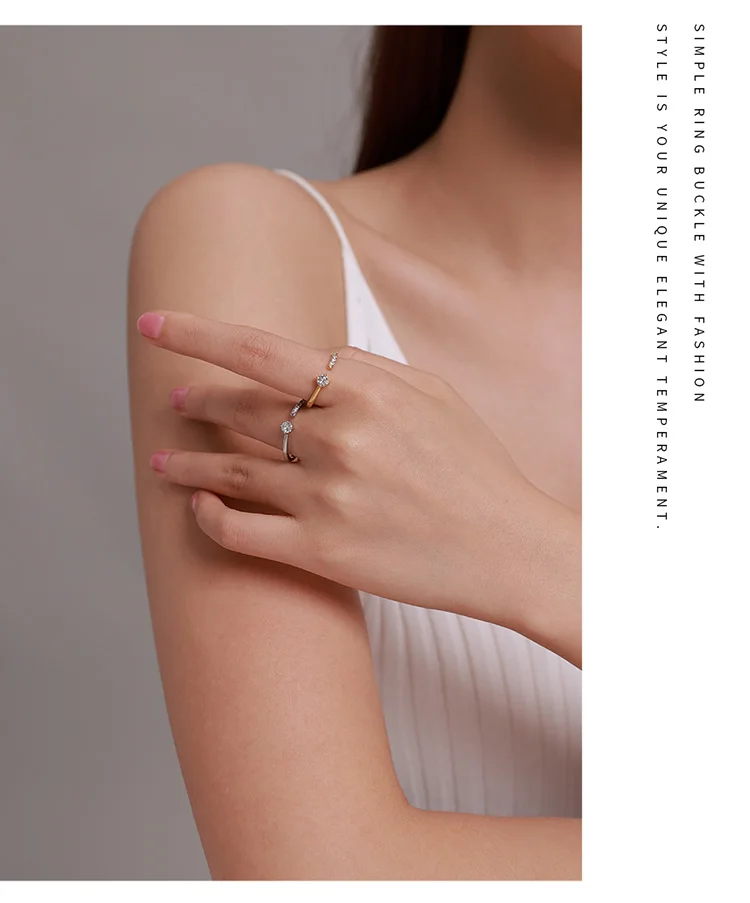 ❤ 【Description】 The open ring with asymmetrical design is paved with zircon on one side and decorated with a large zircon on the other side. It is fashionable and unique, creative and versatile.