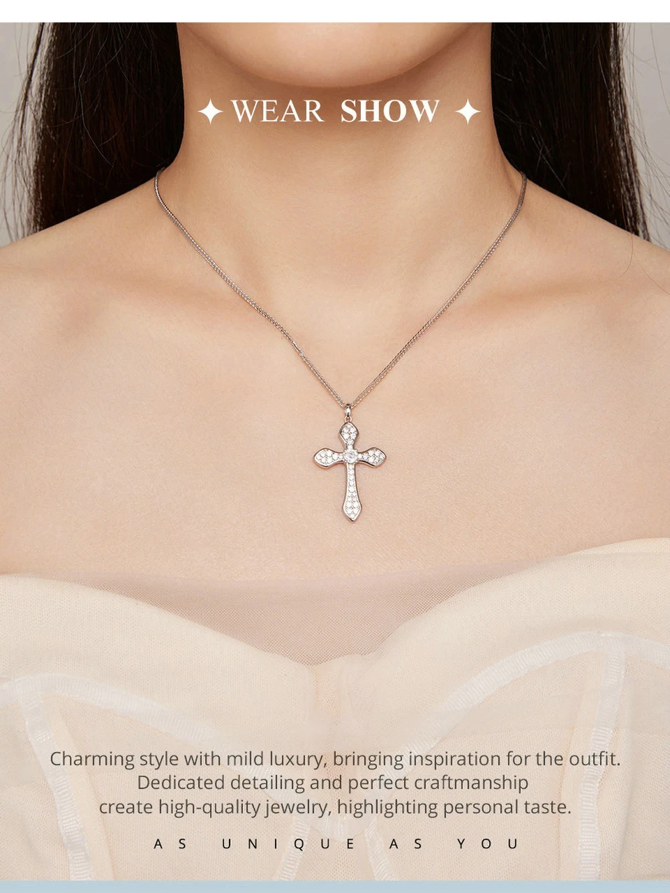 ❤ 【Description】The chain uses the convenient Chopin chain, with a cross inlaid with zircons, which is exquisite and fashionable. The cross means to guard the faith.