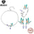BISAER 100% 925 Sterling Silver Kingfisher Jewerly Set Bird Bracelet Open Ring Stud Earrings Purple Zircon for Women Party Gift