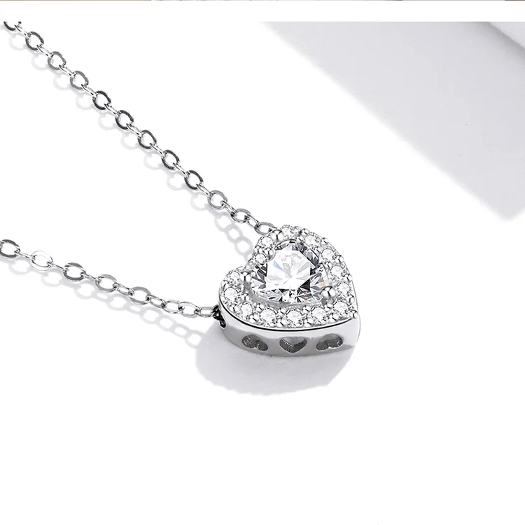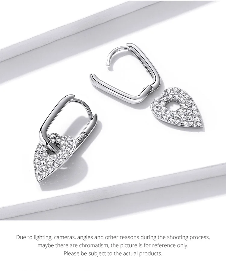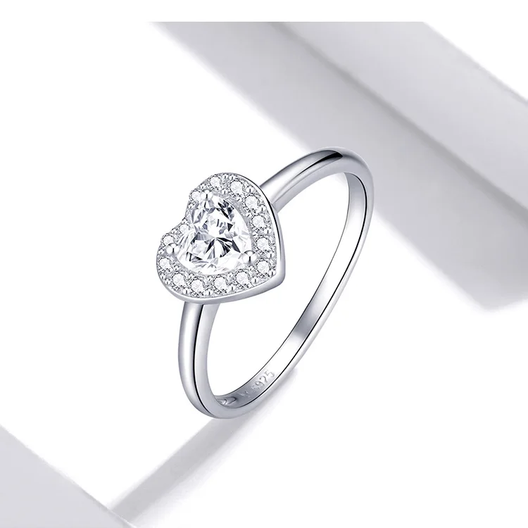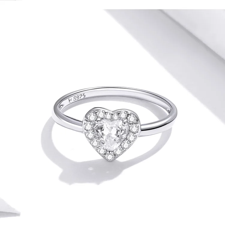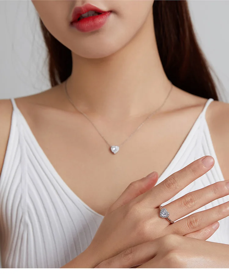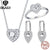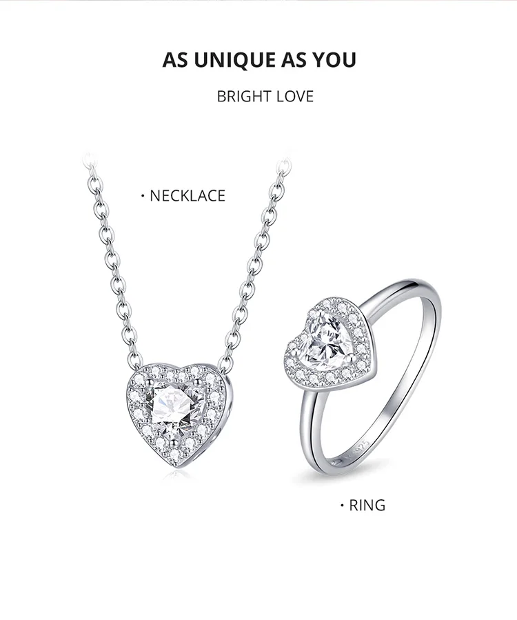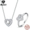 BISAER 925 Sterling Silver Heart Statement Jewelry Sets Clear Shining CZ Promise Ring Necklace Eearrings Women Wedding Luxury