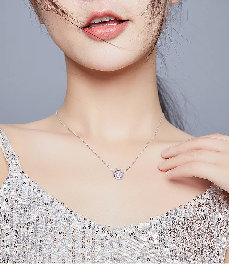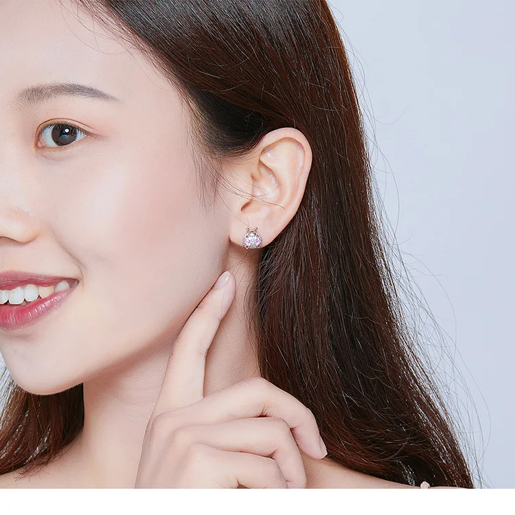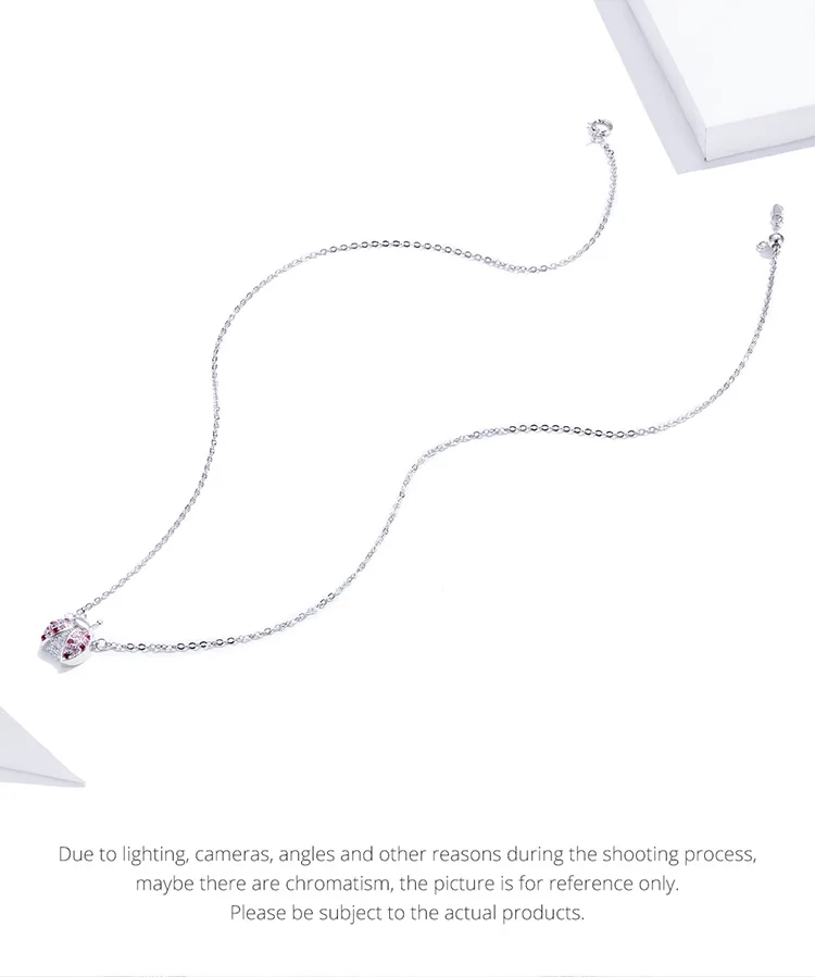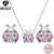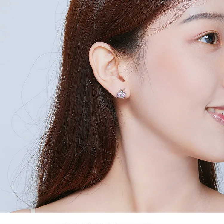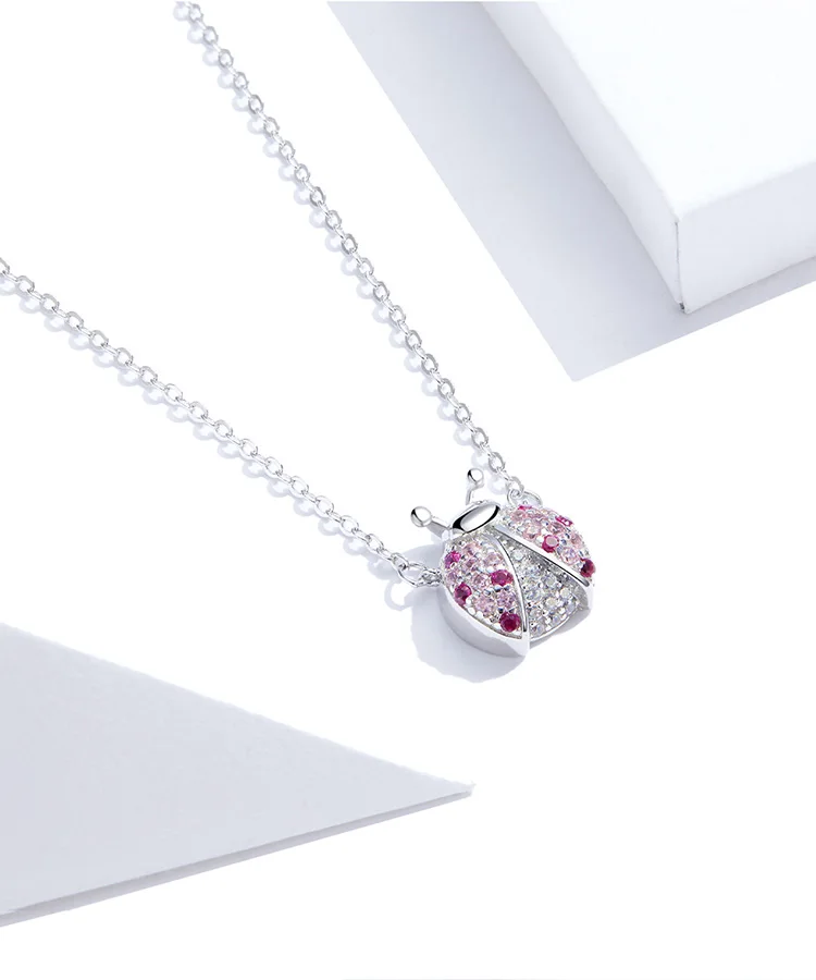 BISAER 925 Sterling Silver Pink Laybug Jewelry Set Pavé Setting Zircon Necklace Earrings Plated Platinum For Romantic Women Gift